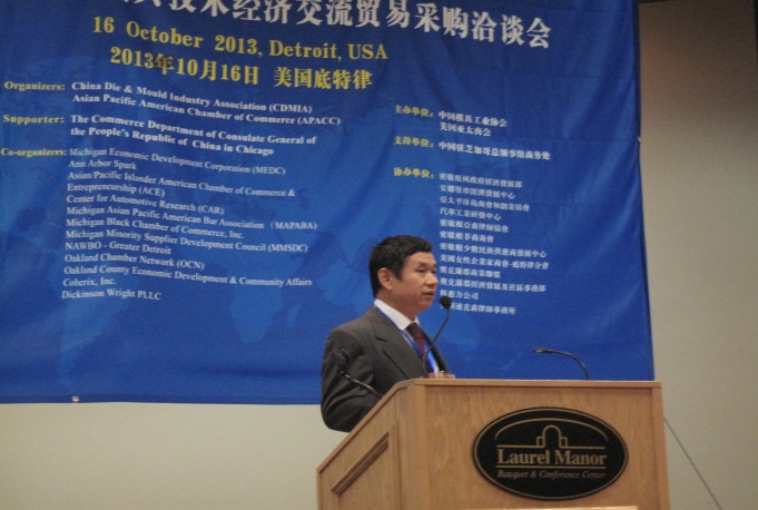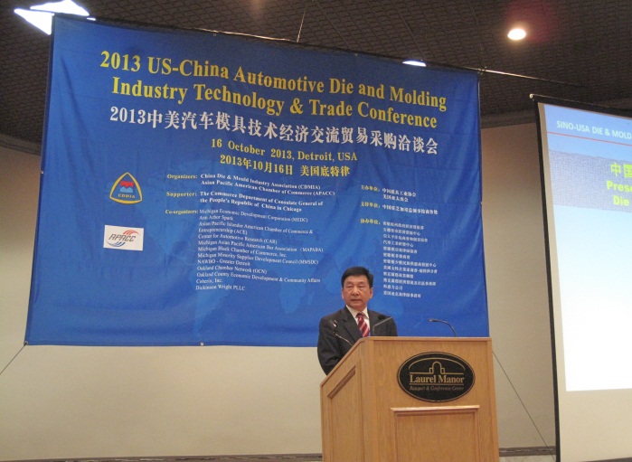 由中國模具工業協會、美國亞太商會共同主辦的“2013中美汽車模具技術經濟貿易采購洽談會(2013US-China Automotive Die and Molding Industry Technology & Trade Conference)”于2013年10月15--17日在美國底特律成功舉辦。本次活動得到中國駐芝加哥總領事館商務處(支持單位)和美國密歇根州政府經濟發展署、安娜堡巿經濟發展中心、亞太平洋島商會和創業協會、美國汽車工業研發中心、美國科惠力公司、美國迪克森律師事務所、 美國密歇根亞裔律師協會、美國密歇根非裔商會、美國密歇根少數民族供應商發展中心、美國女性企業家商會-疷特律分會、 美國奧克蘭郡商業聯盟、美國奧克蘭郡經濟發展及社區事務部(協辦單位)的大力支持。