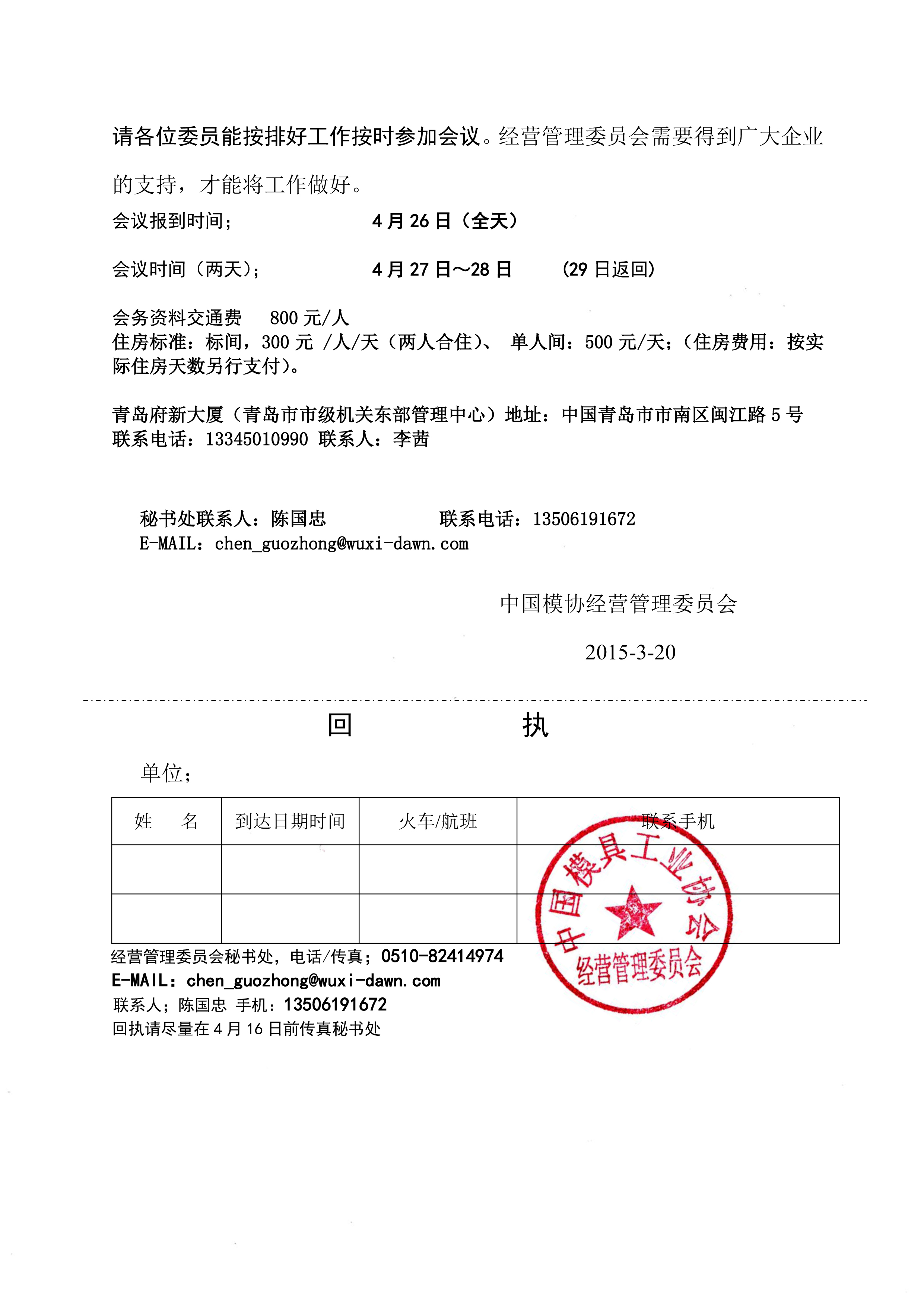 召開中國模協經營管理委員會2014年度年會的通知