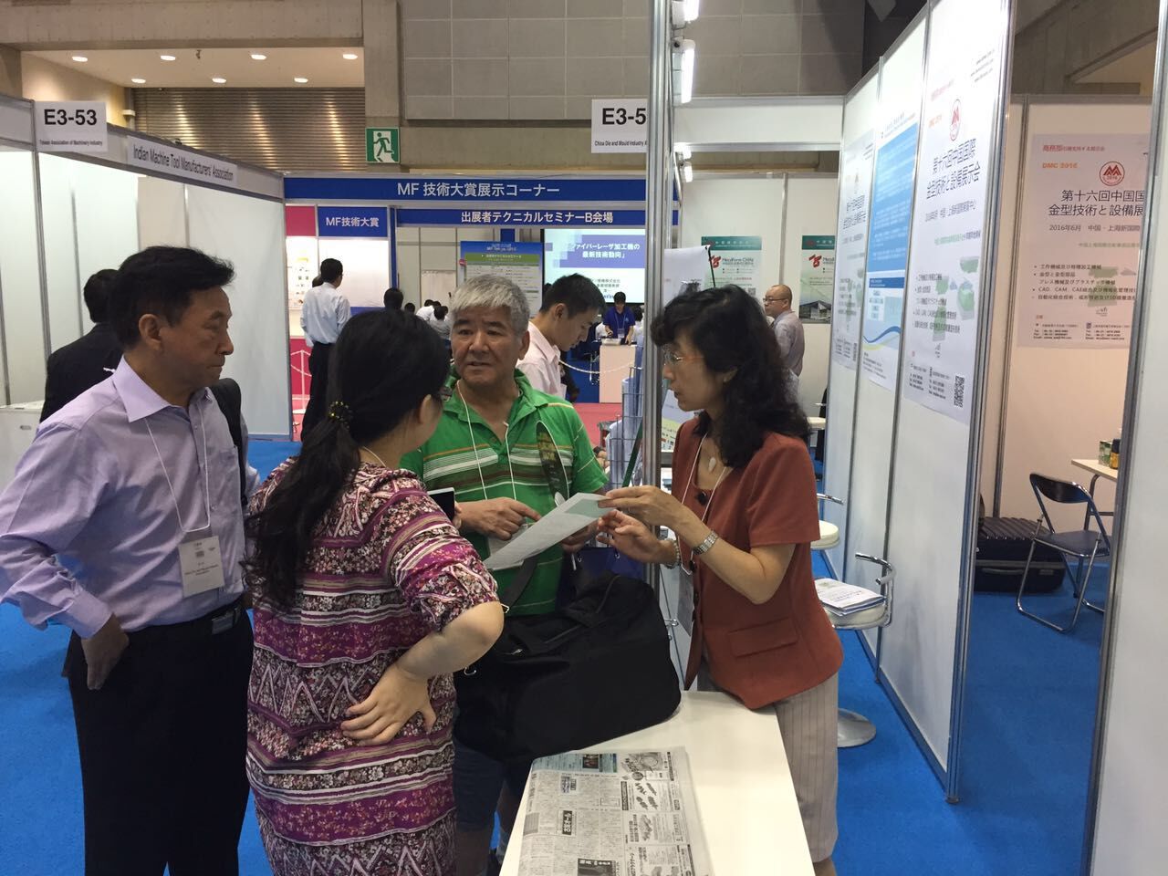 2015年7月15日至18日,中國模具工業協會常務副會長兼秘書長武兵書,常務副秘書長秦珂及上海國展模具展項目余國慶總監等率代表團,參加了于2015年7月15日至18日在東京國際展覽中心舉辦的MF-TOKYO 2015東京沖壓•鈑金•成型加工展,同時中國模協帶去了一汽模具、天汽模具、中泰、大連神通科技等模具企業的沖壓模具與模具制件產品資料,與現場的展商、觀眾交流;在現場推介DMC2016國際模展。