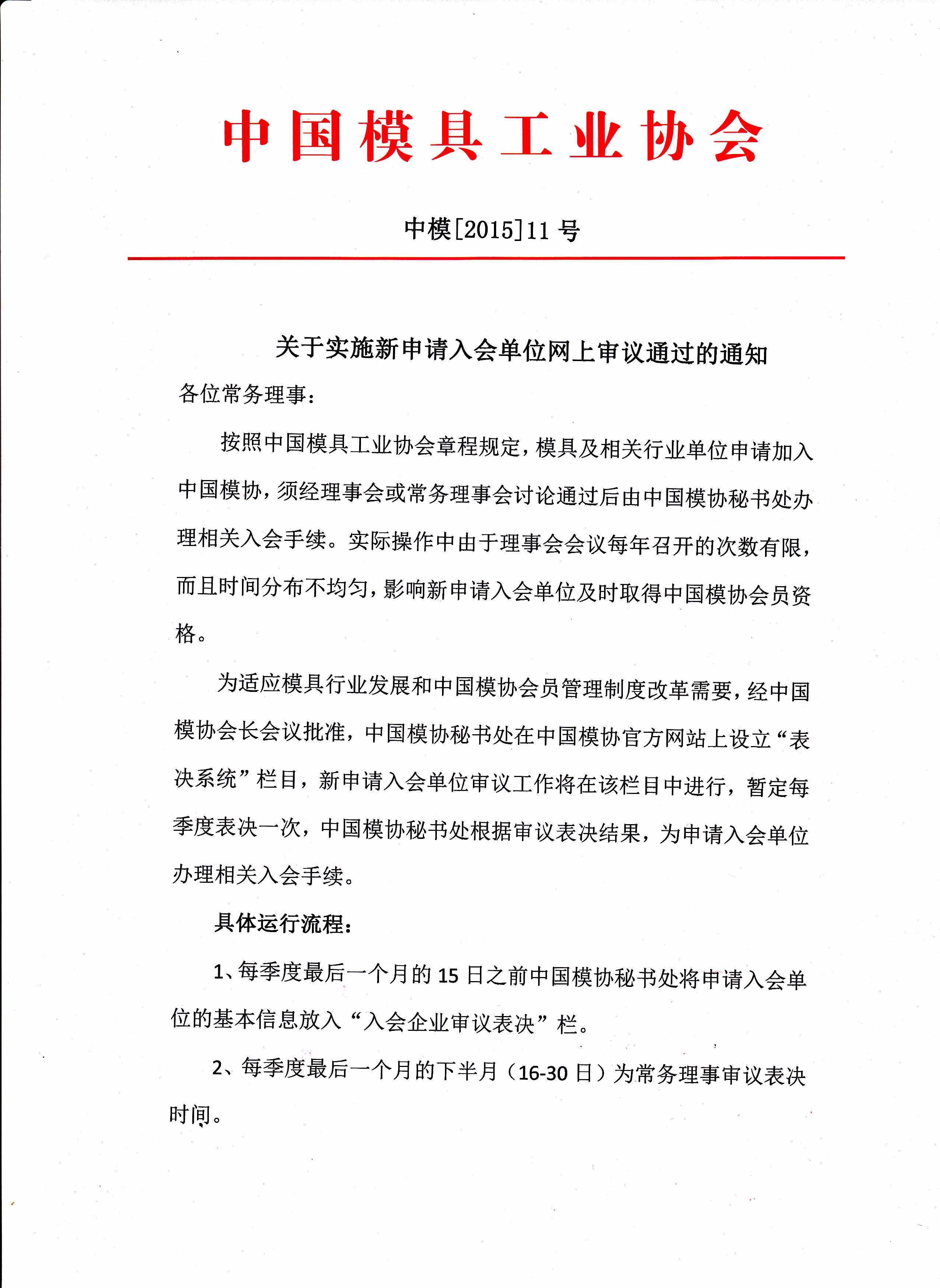 關(guān)于實(shí)施新申請(qǐng)入會(huì)單位網(wǎng)上審議通過(guò)的通知