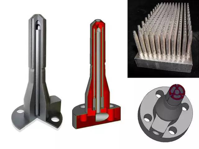要求:不能采用傳統(tǒng)加工工藝的帶內(nèi)部冷卻流道的長銷,高硬度、高壽命和高熱傳導性