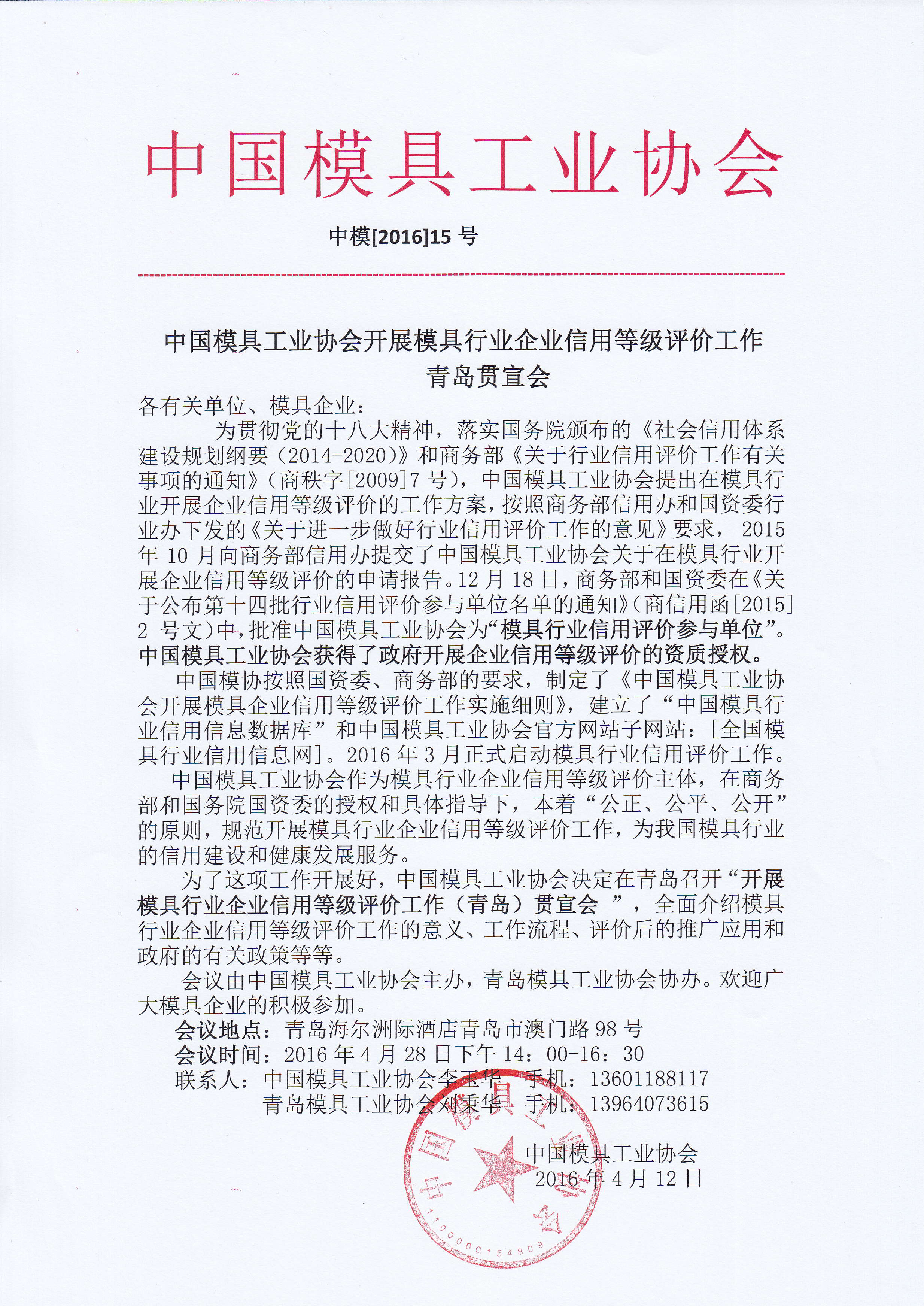 中國模具工業(yè)協(xié)會開展模具行業(yè)企業(yè)信用等級評價(jià)工作青島貫宣會