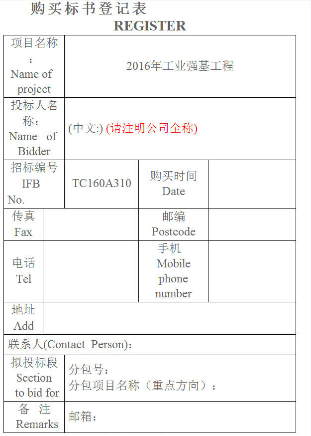 3、招標文件每包600元人民幣,售出不退,沒有購買招標文件的投標將被視為無效投標而被否決。如需郵購,請按我公司相關財務信息匯款,匯款單上應注明匯款用途、所購招標文件編號/包號,然后將匯款單復印件,購買單位名稱、詳細通訊地址、郵編、辦公電話、手機、傳真及聯(lián)系人等內容傳真給我公司(詳見“購買標書登記表”附后),我公司收到傳真后將盡快以快遞方式將招標文件郵寄給貴單位,如需要可提供所購招標文件電子版。