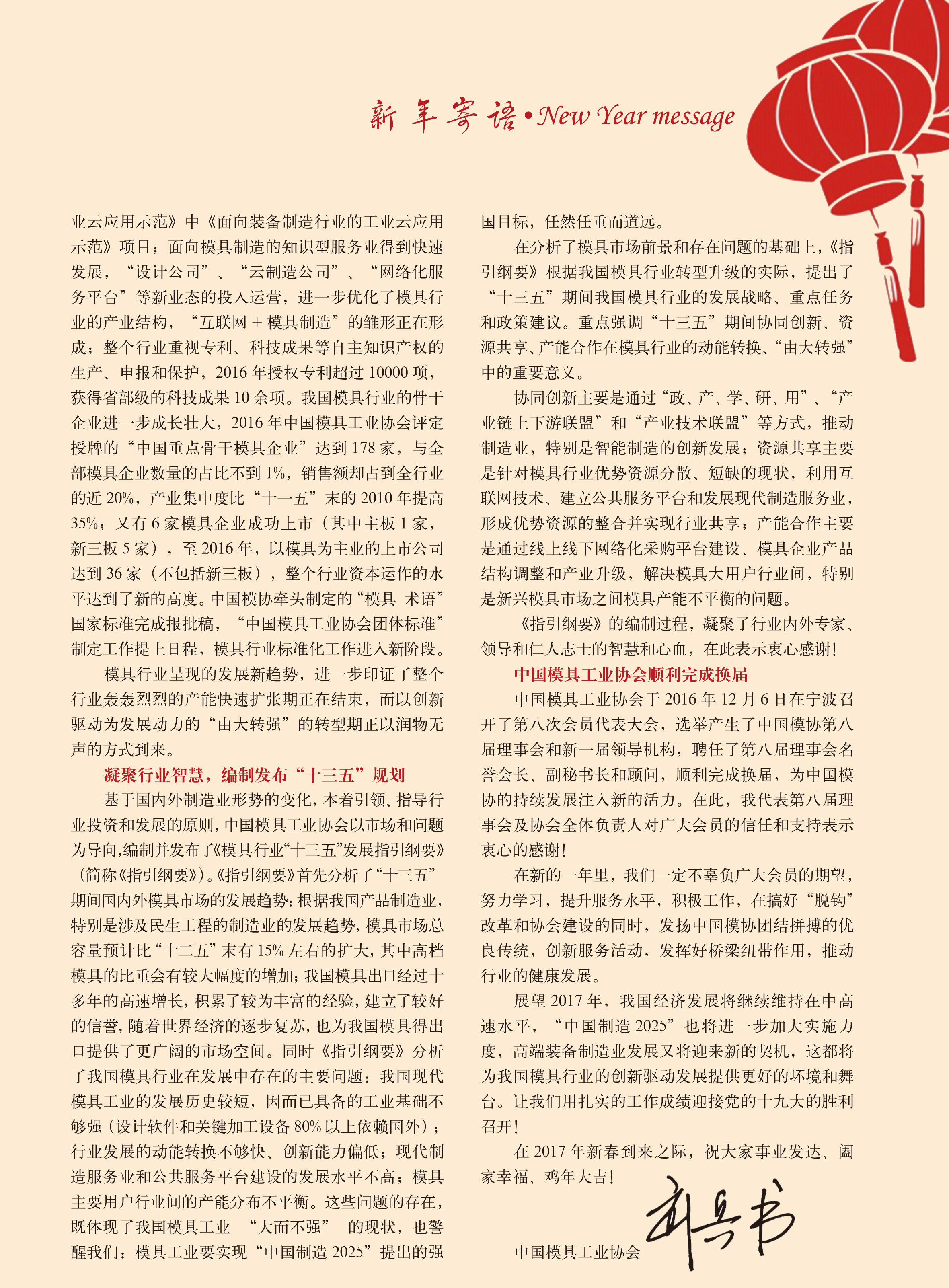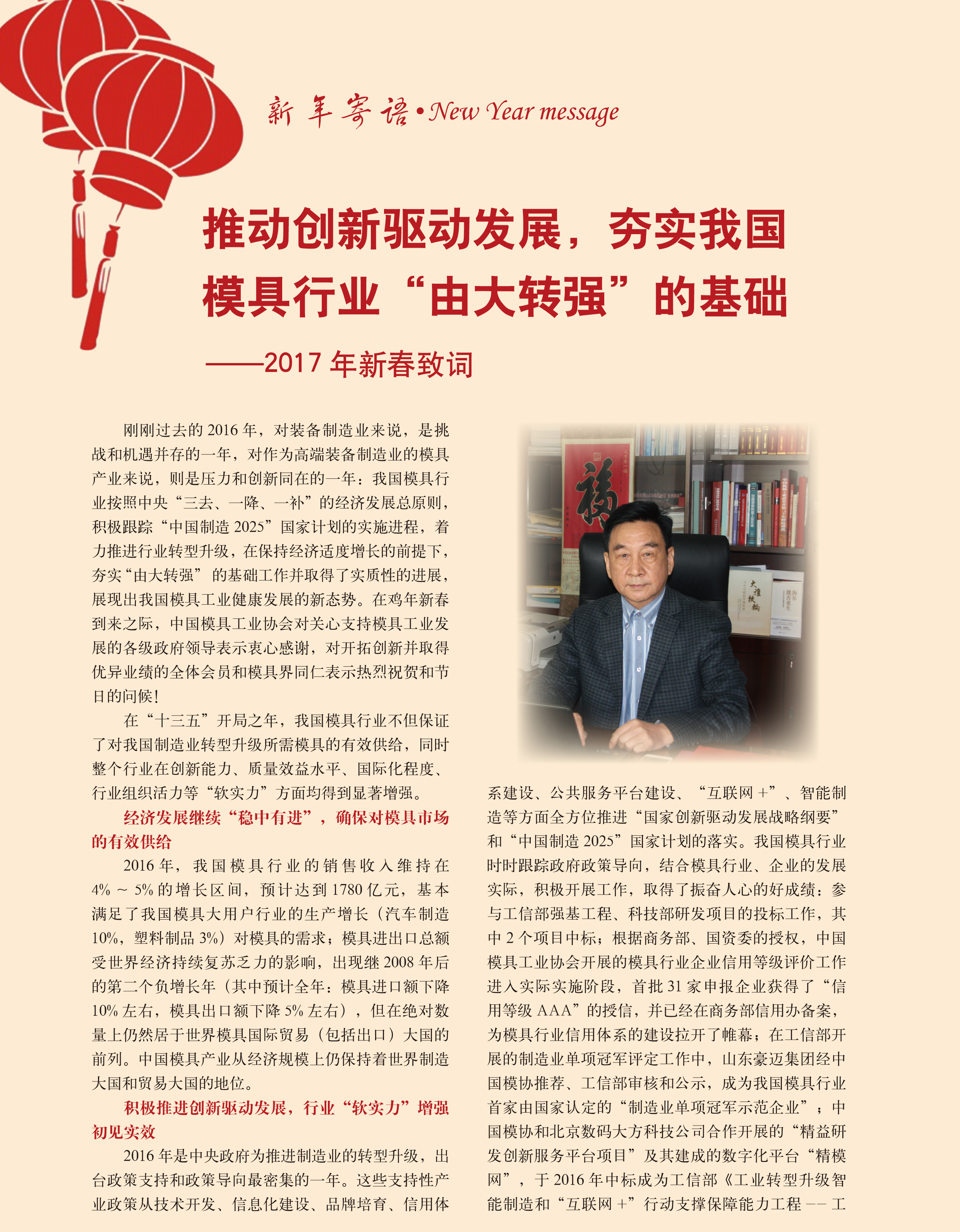 ——中國模具工業協會會長2017年新春致詞