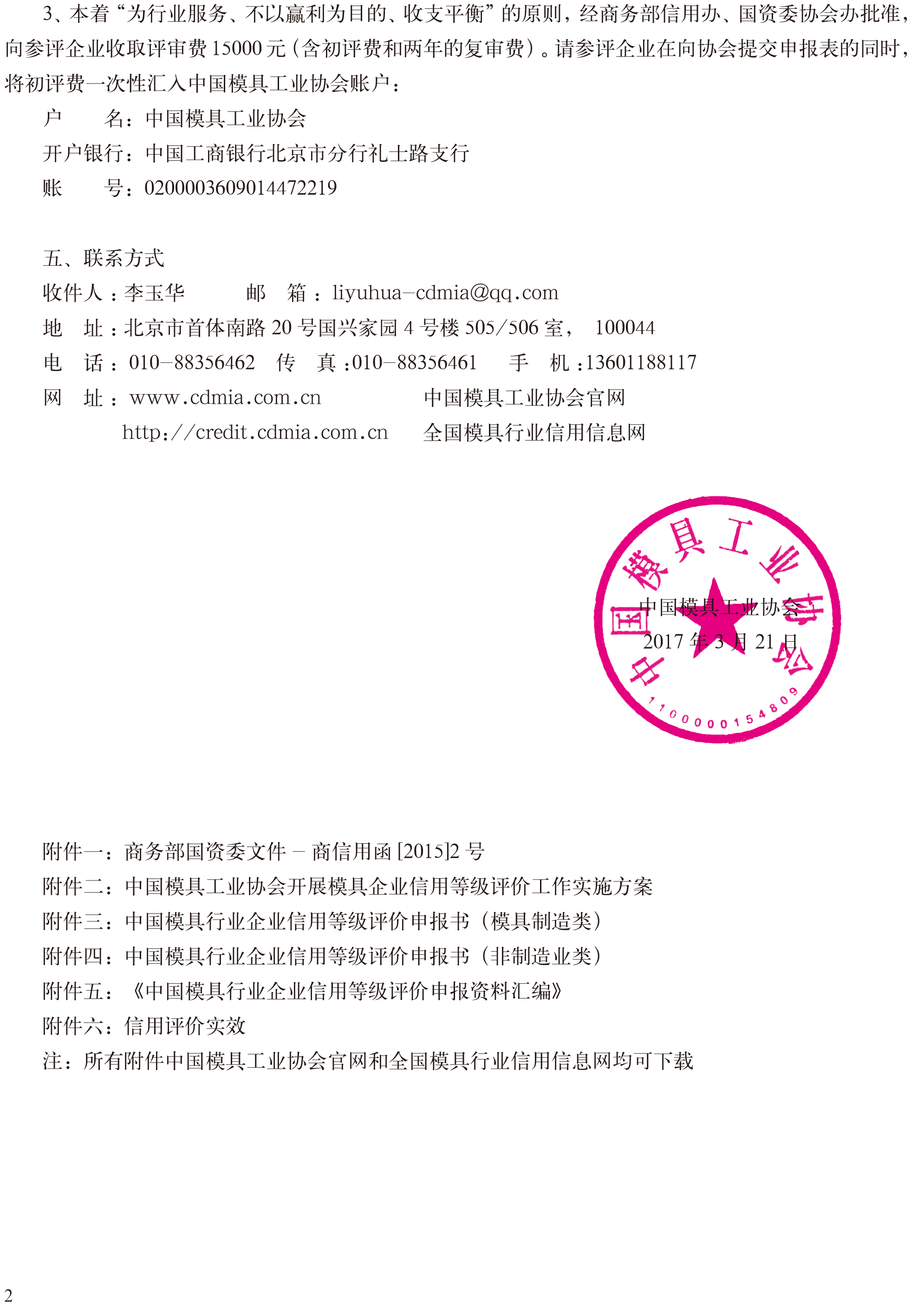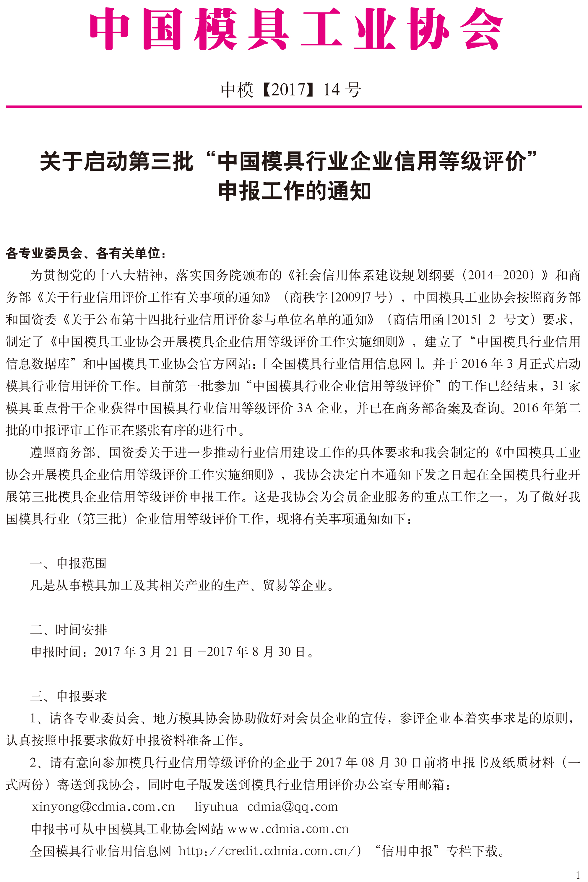 關(guān)于啟動第三批“中國模具行業(yè)企業(yè)信用等級評價”申報工作的通知