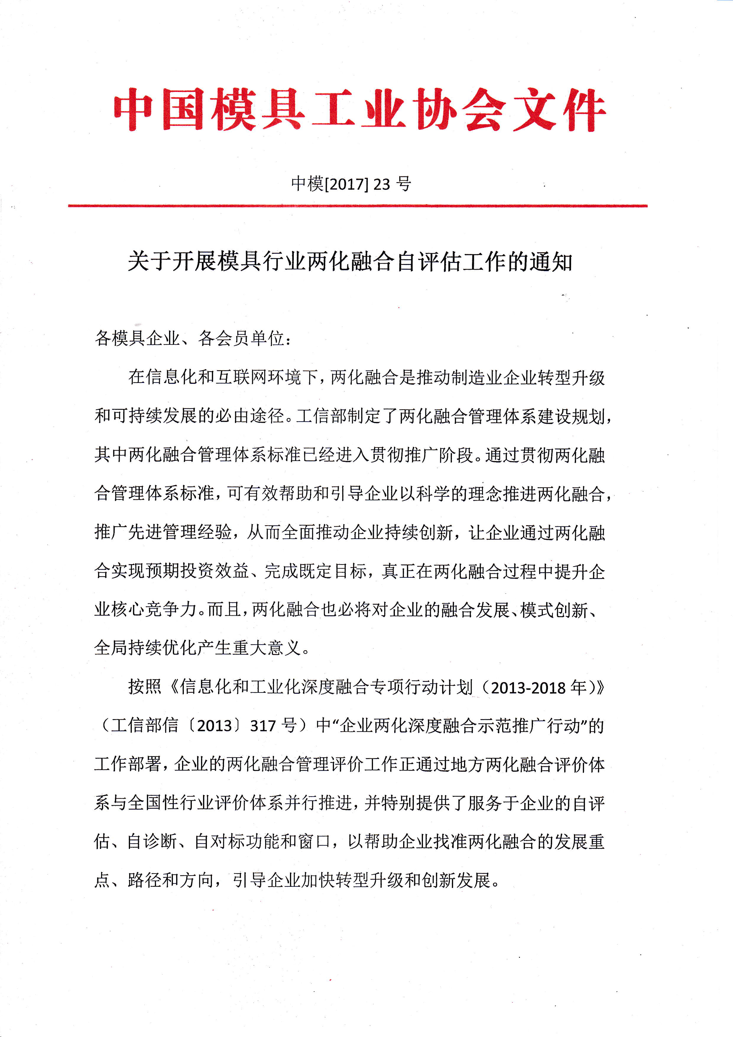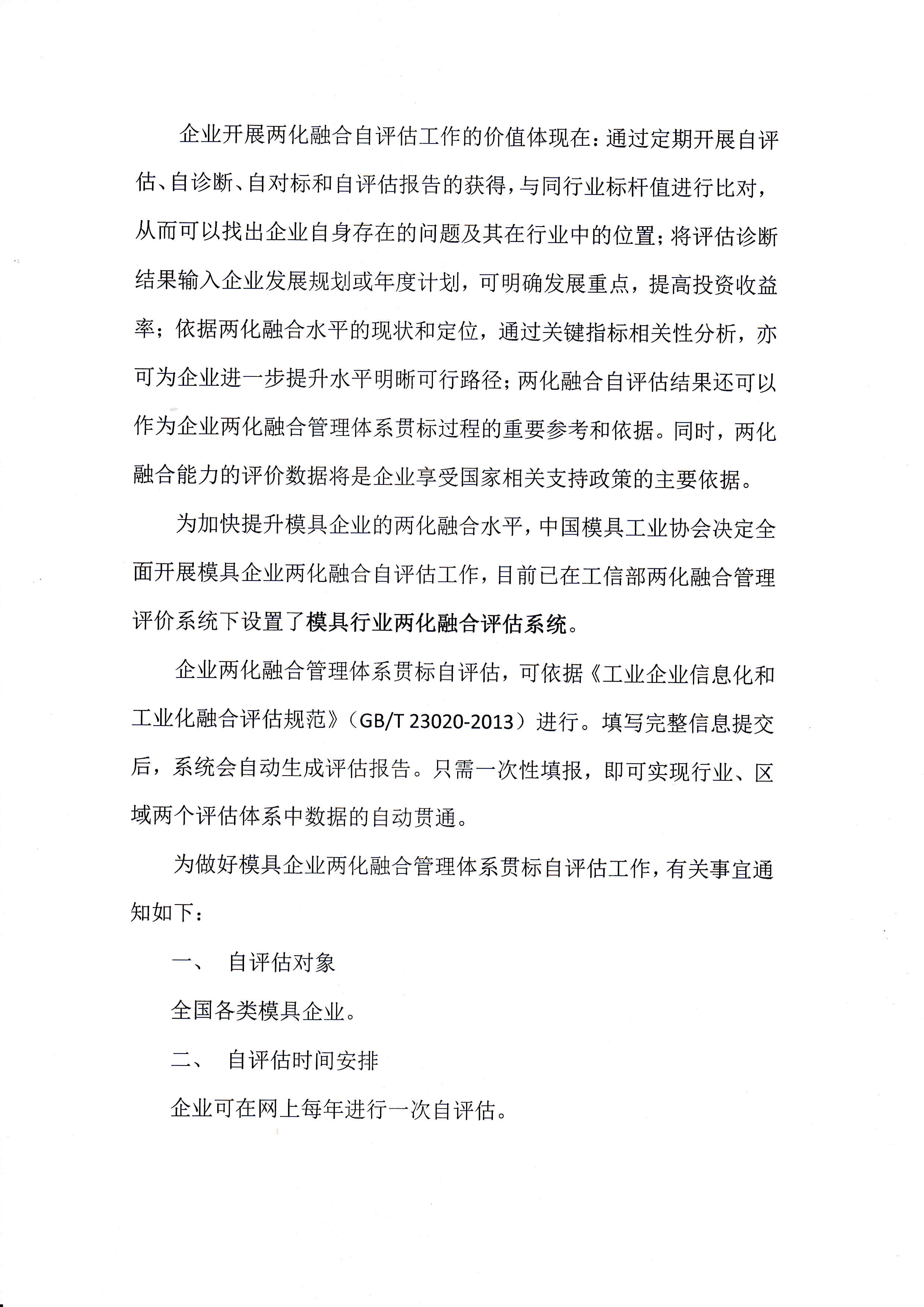 關于開展模具行業兩化融合自評估工作的通知