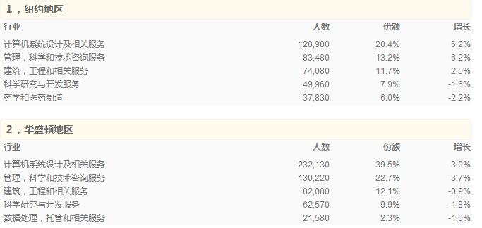 在總產(chǎn)值上,華盛頓、加州、波士頓等幾個(gè)都會(huì)區(qū)增加比較多。基本上和工作數(shù)目的增長(zhǎng)基本一致。