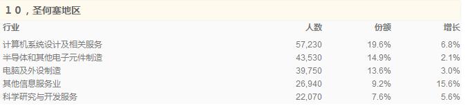 在工作數(shù)目上,華盛頓、加州等幾個(gè)都會(huì)區(qū)域增加比較明顯。華盛頓工作數(shù)目的增長(zhǎng)是因?yàn)槁?lián)邦政府所在地,政治影響經(jīng)濟(jì)的效應(yīng)比較顯著,這種效應(yīng)還會(huì)長(zhǎng)期下去。加州是因?yàn)閹讉€(gè)大型的高科技公司在這里發(fā)展起來(lái),這里的創(chuàng)業(yè)氛圍特別濃。