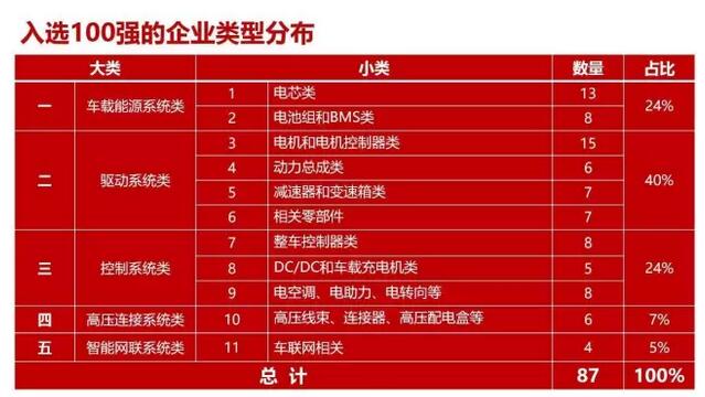 中國(guó)電動(dòng)汽車零部件100強(qiáng)入選名單