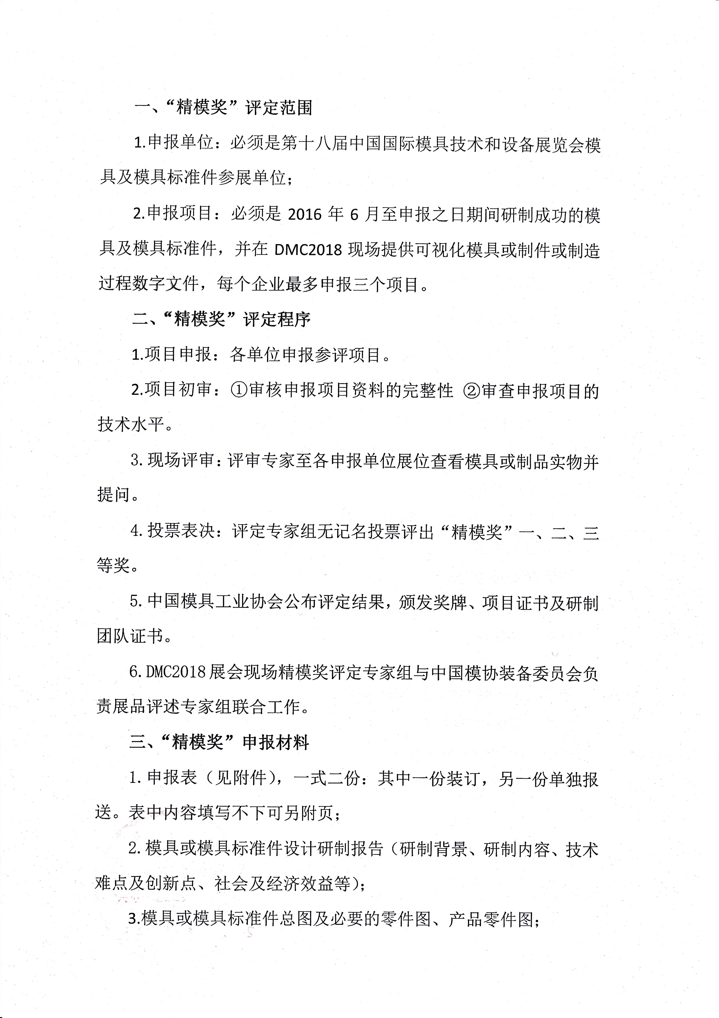 第十八屆中國(guó)國(guó)際模具技術(shù)和設(shè)備展覽會(huì)(DMC2018)參展模具及模具標(biāo)準(zhǔn)件項(xiàng)目“精模獎(jiǎng)”評(píng)定通知