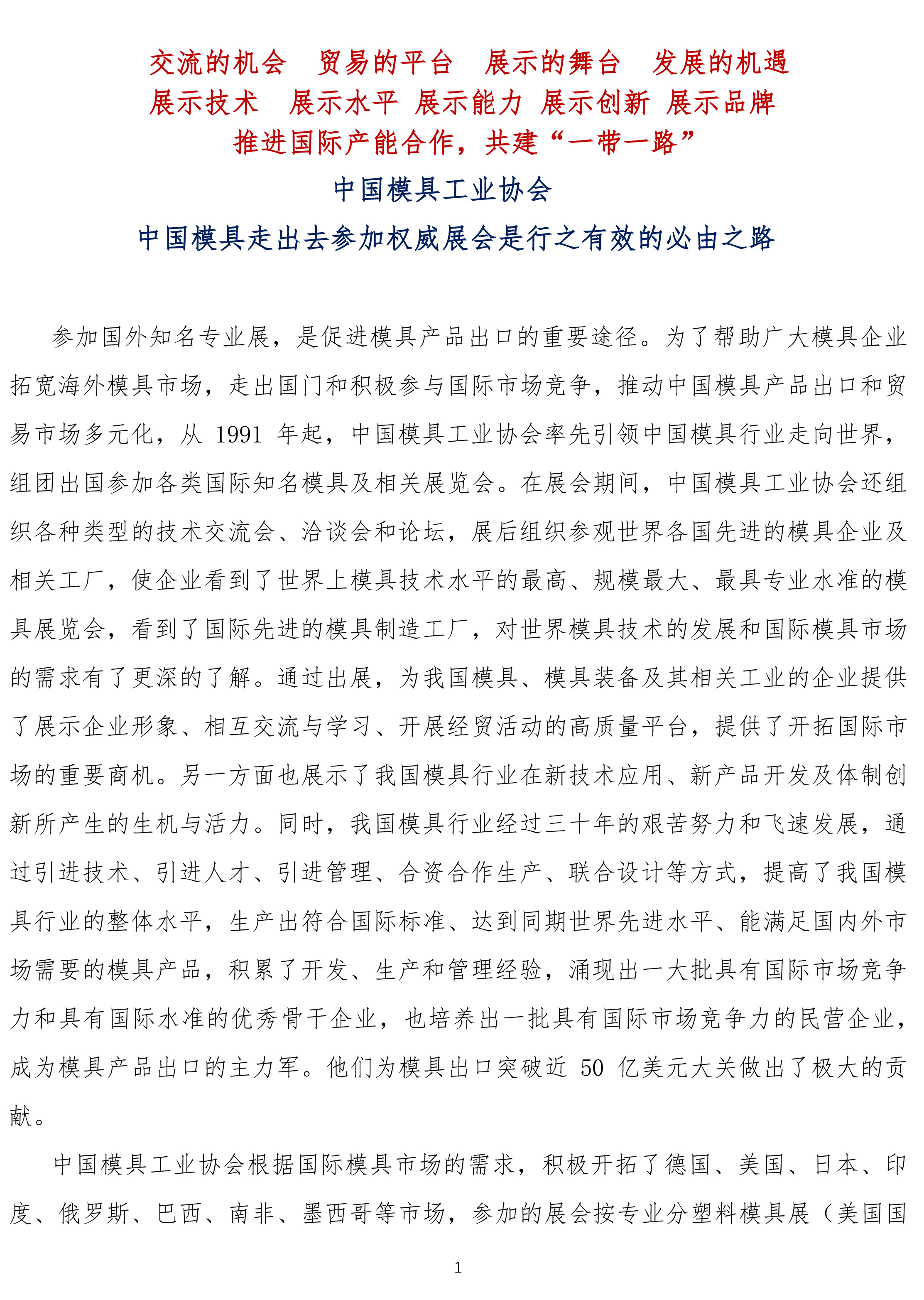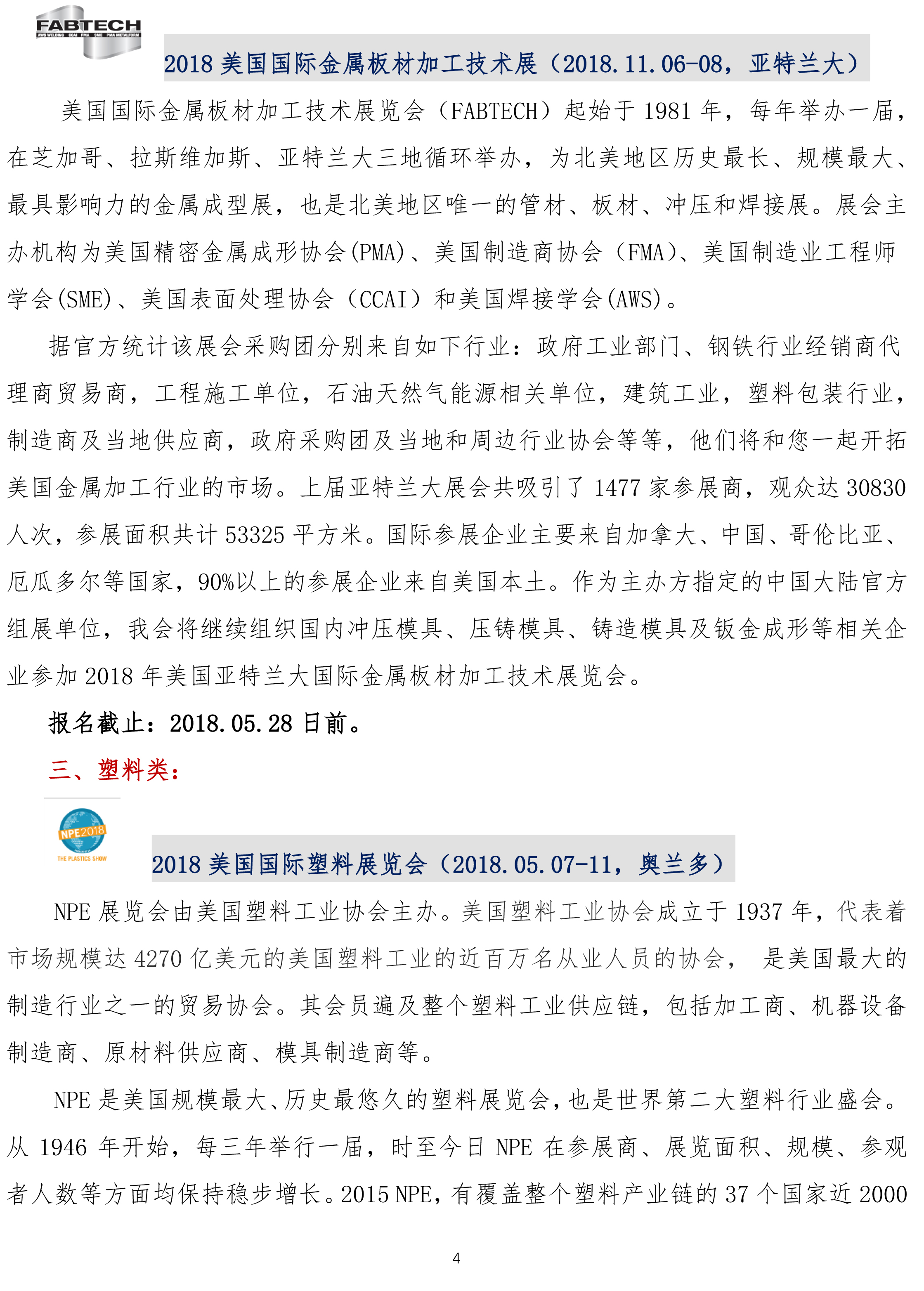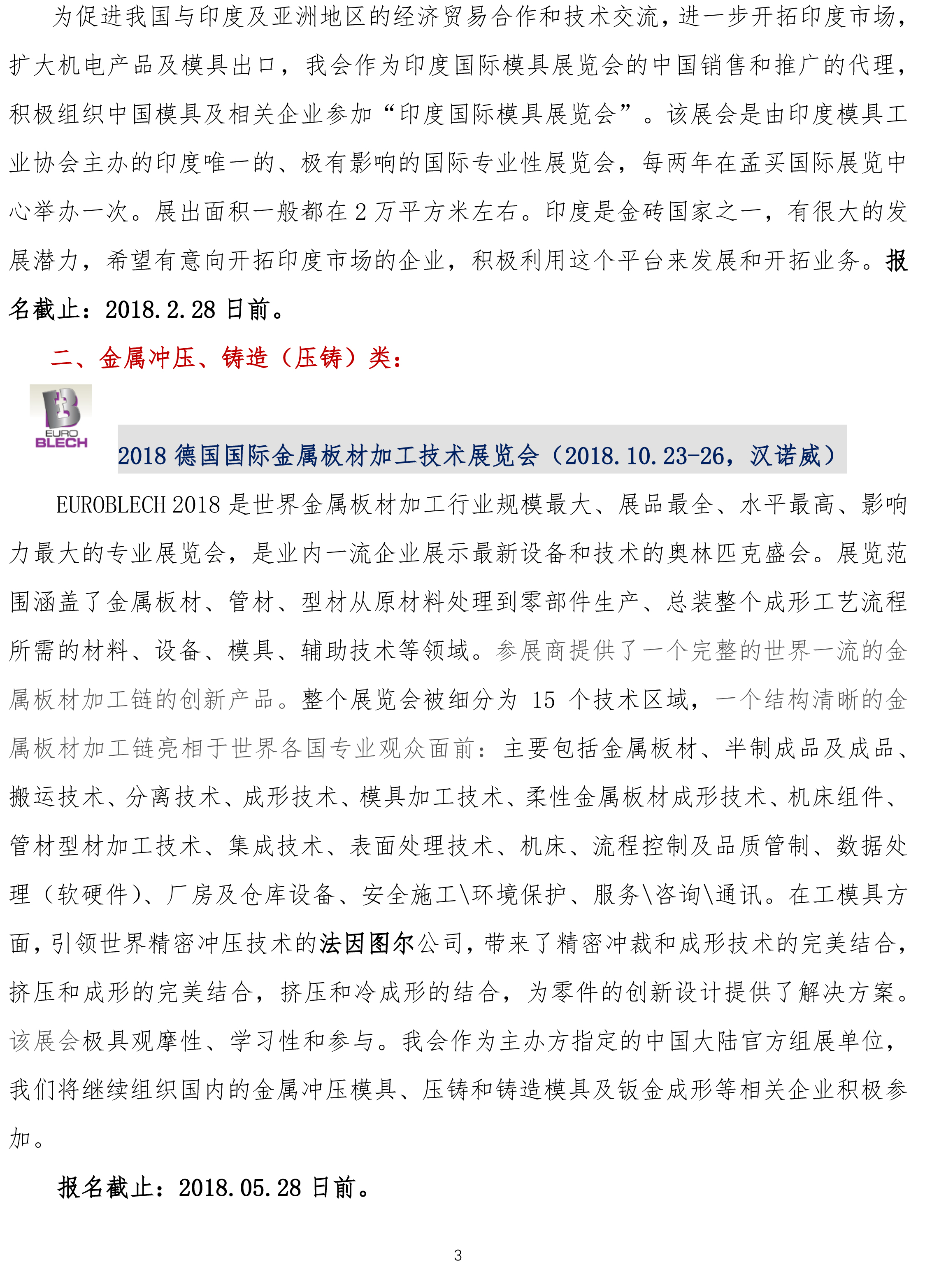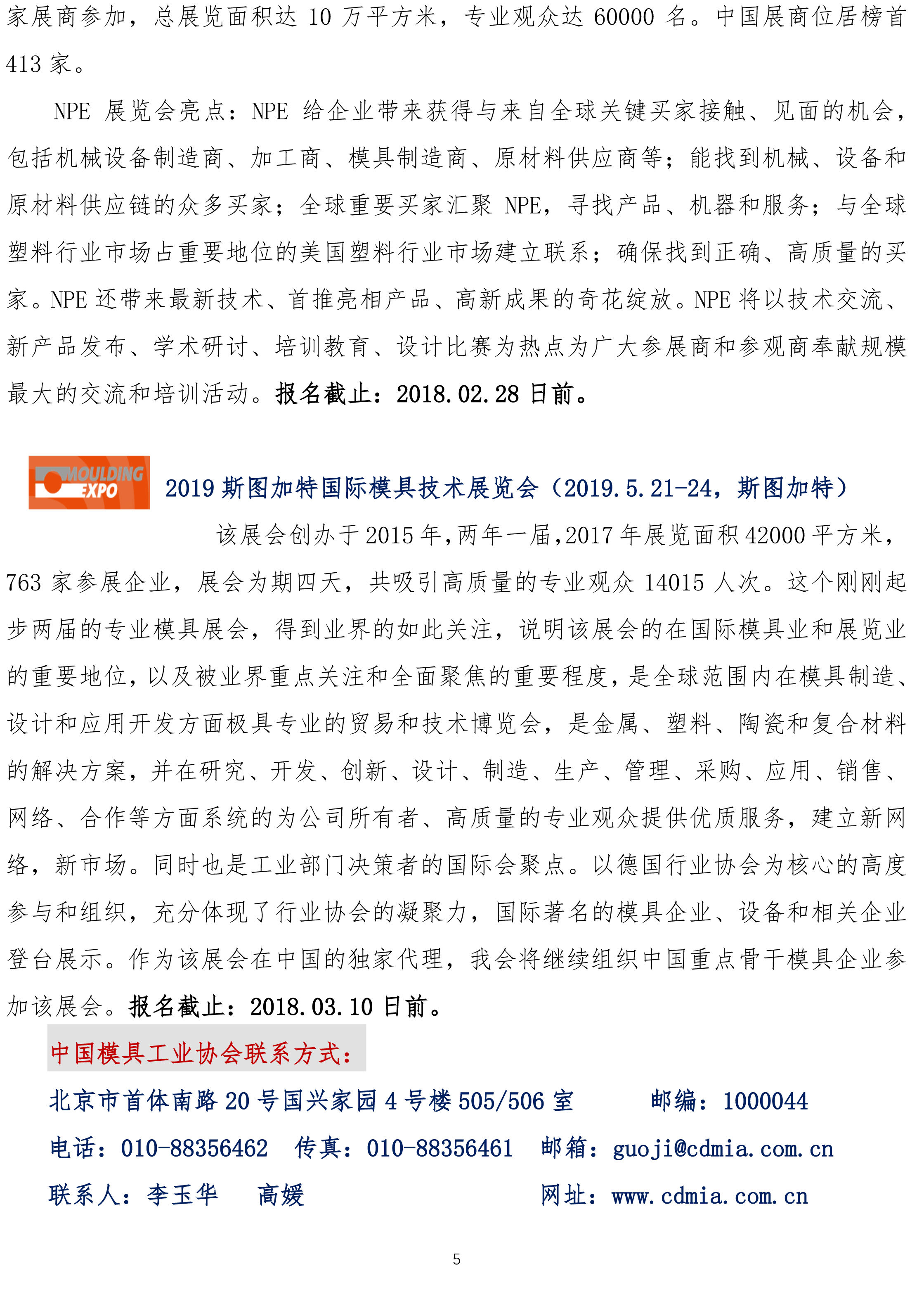 2018年中國(guó)模具工業(yè)協(xié)會(huì)組團(tuán)參加國(guó)際著名模具及相關(guān)展覽會(huì)介紹