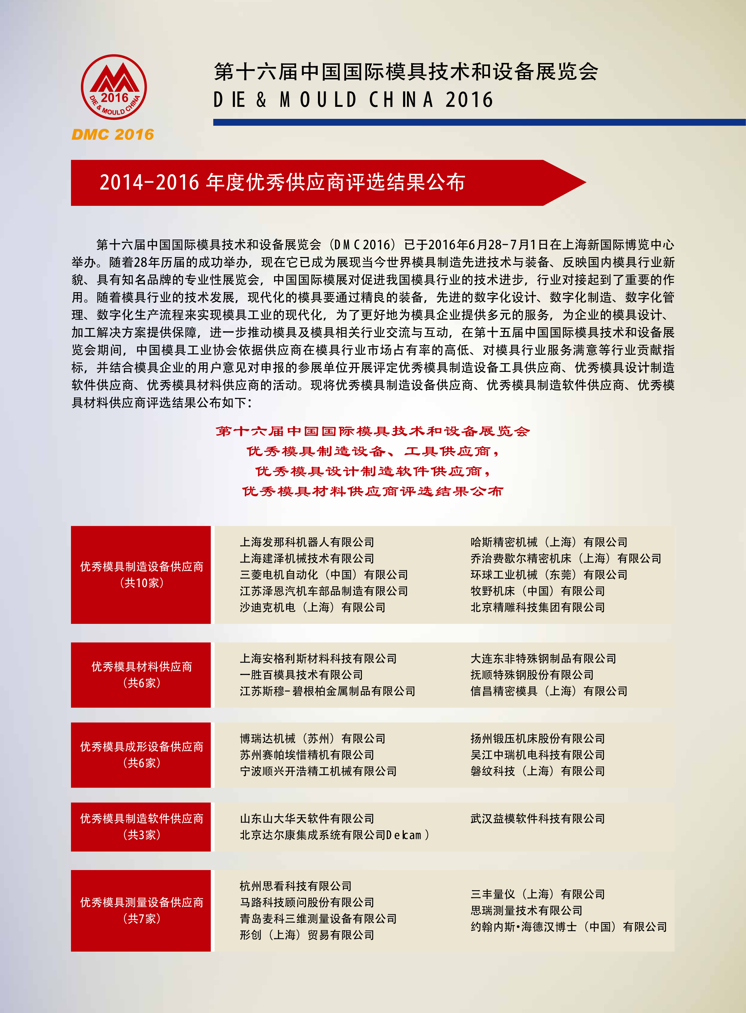 2014-2016年度優(yōu)秀供應(yīng)商評選結(jié)果公布