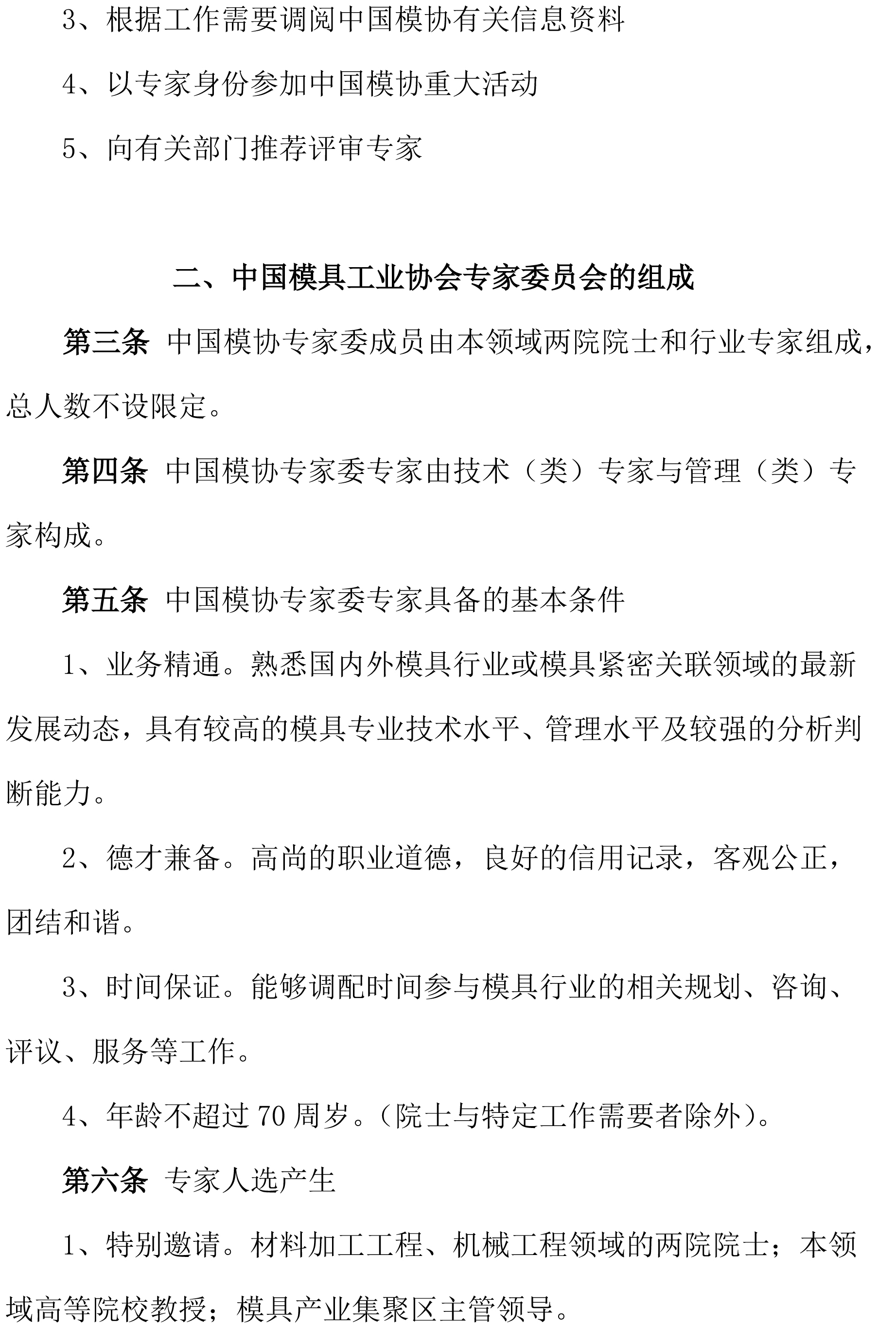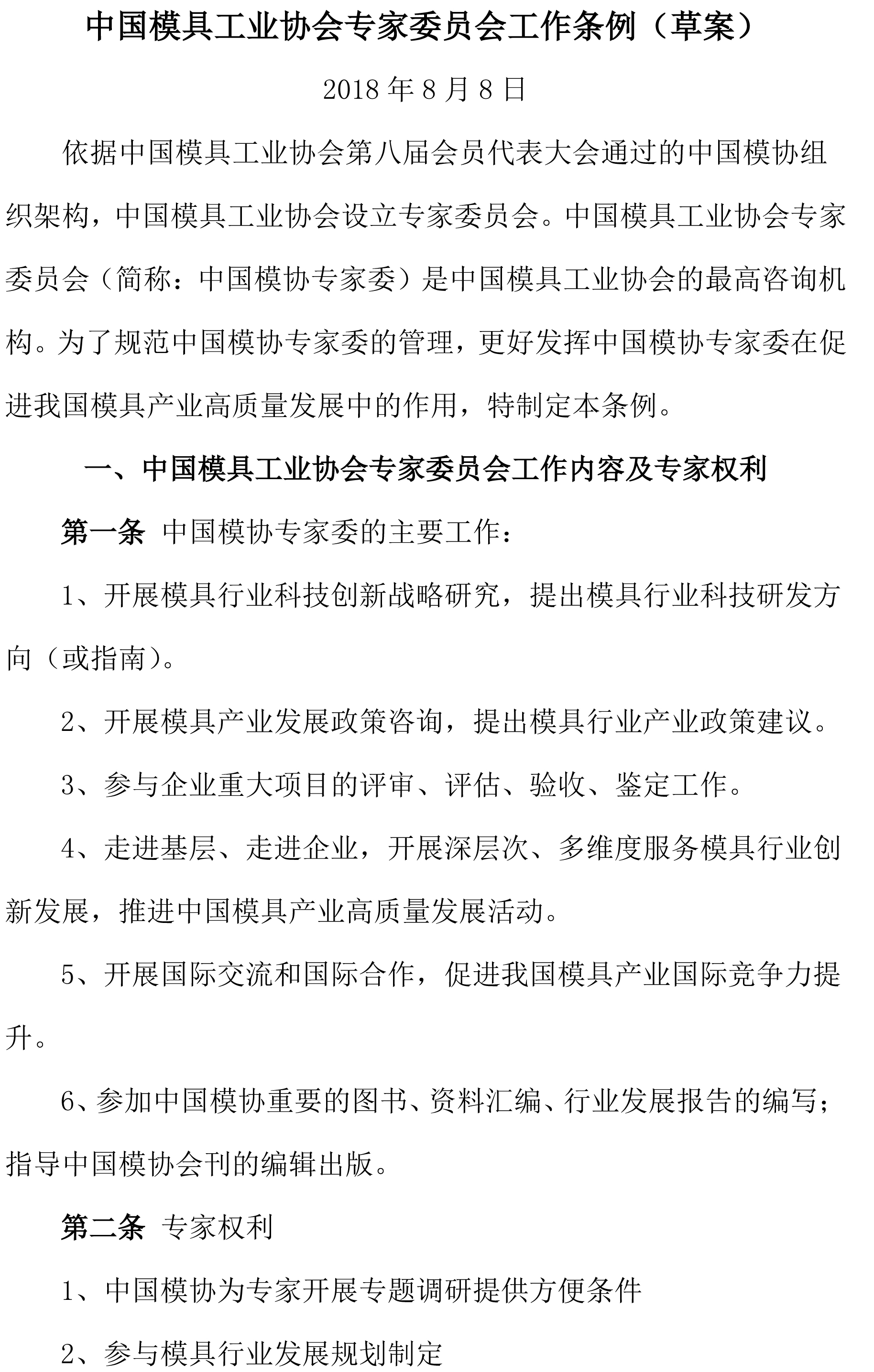 中國模具工業(yè)協(xié)會(huì)專家委員會(huì)工作條例(草案)