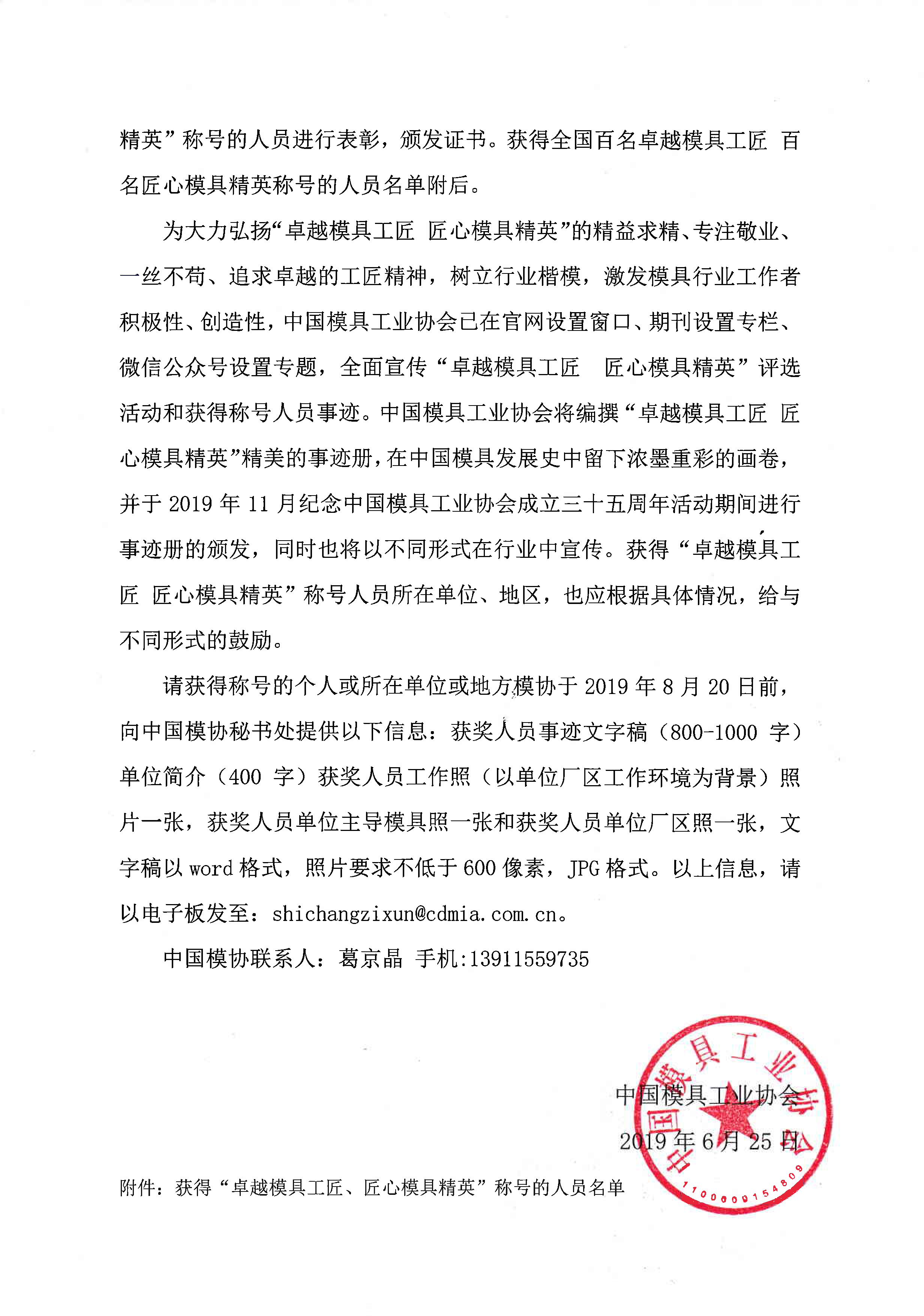 關于首屆“卓越模具工匠 匠心模具精英”表彰決定及出版事跡冊的通知