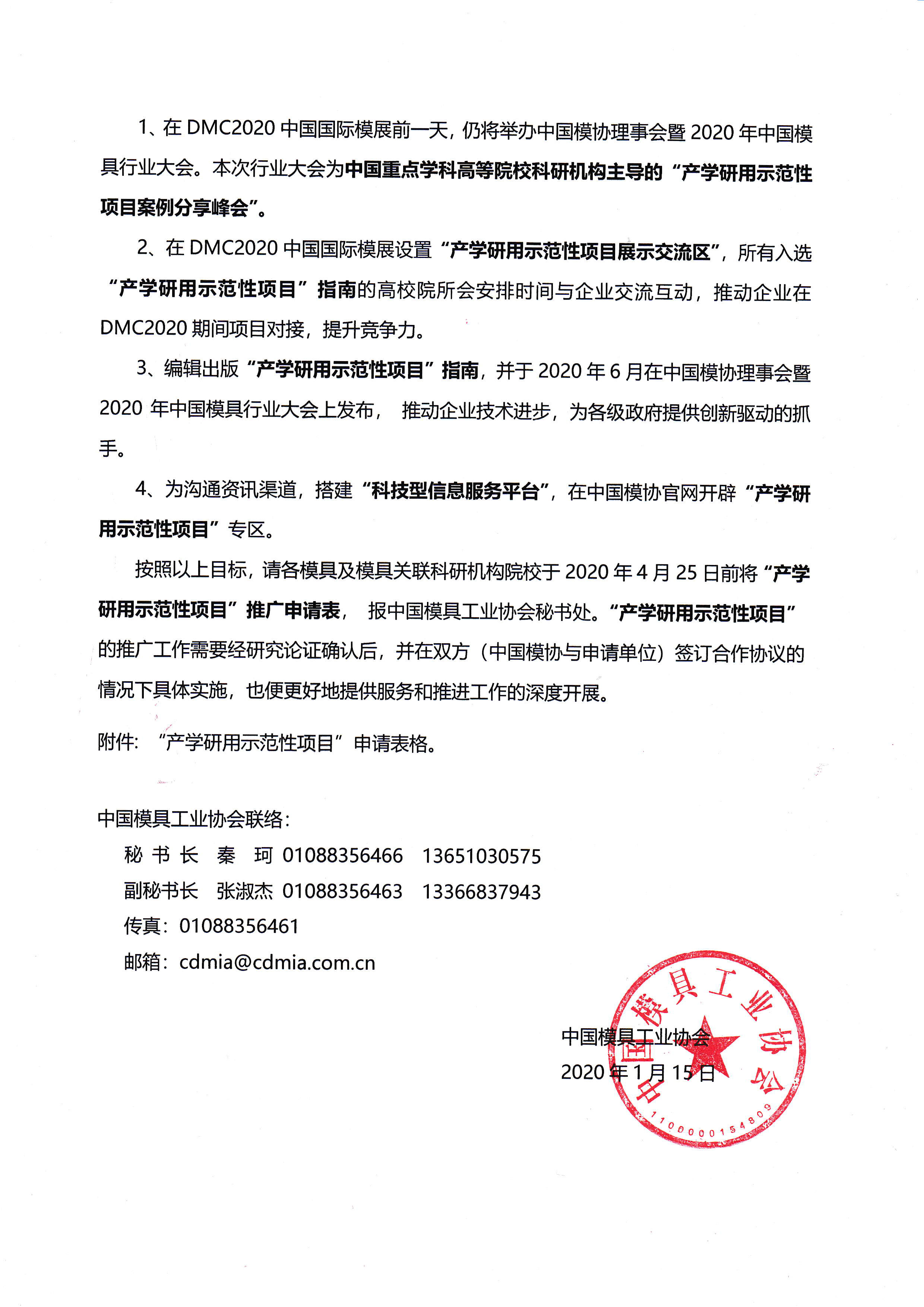 關(guān)于組織參加2020中國模具行業(yè)大會及“2020中國國際模具技術(shù)和設(shè)備展覽會產(chǎn)學(xué)研用示范項目展示專區(qū)”的通知