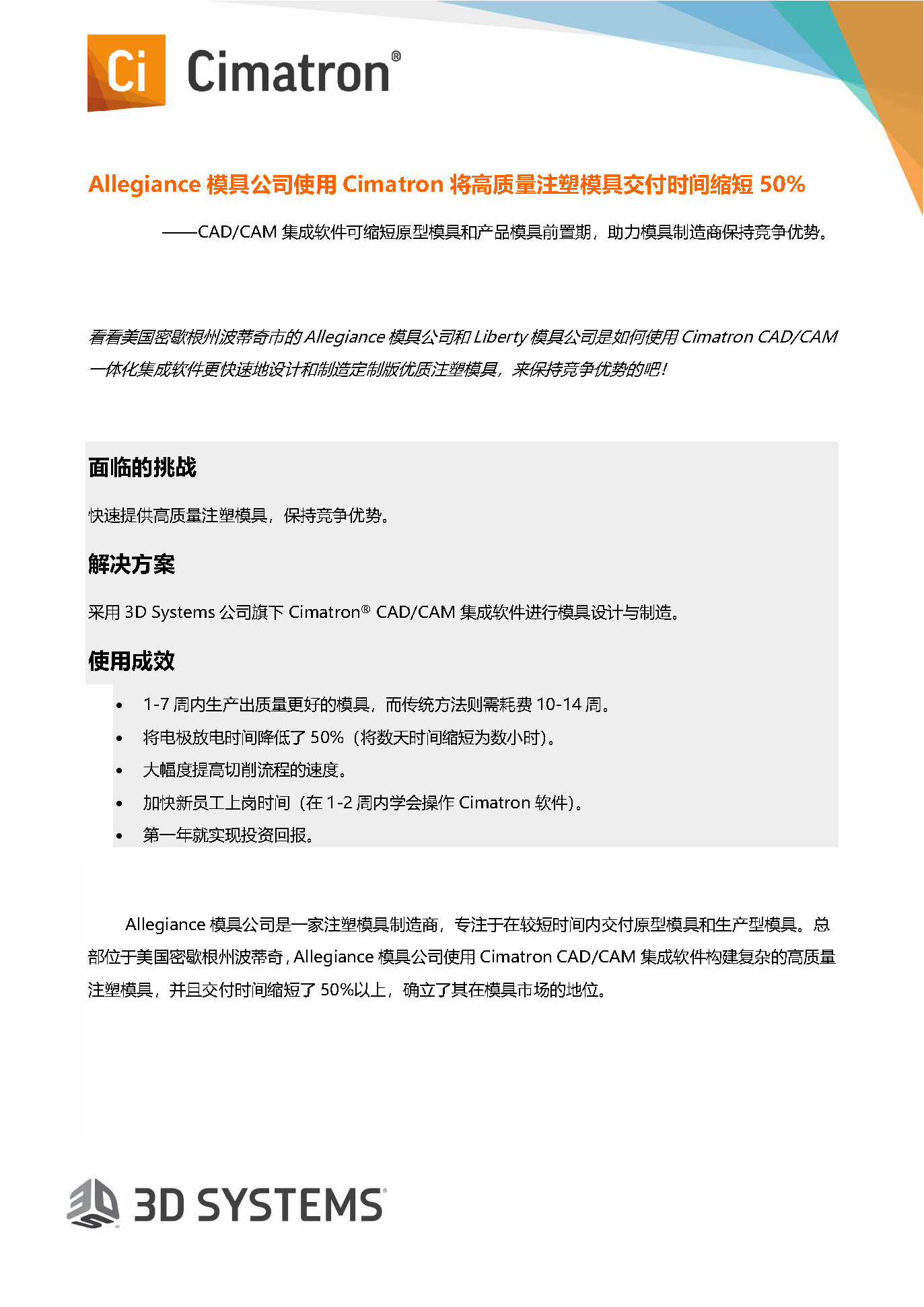 Allegiance模具公司使用Cimatron將高質量注塑模具交付時間縮短50%