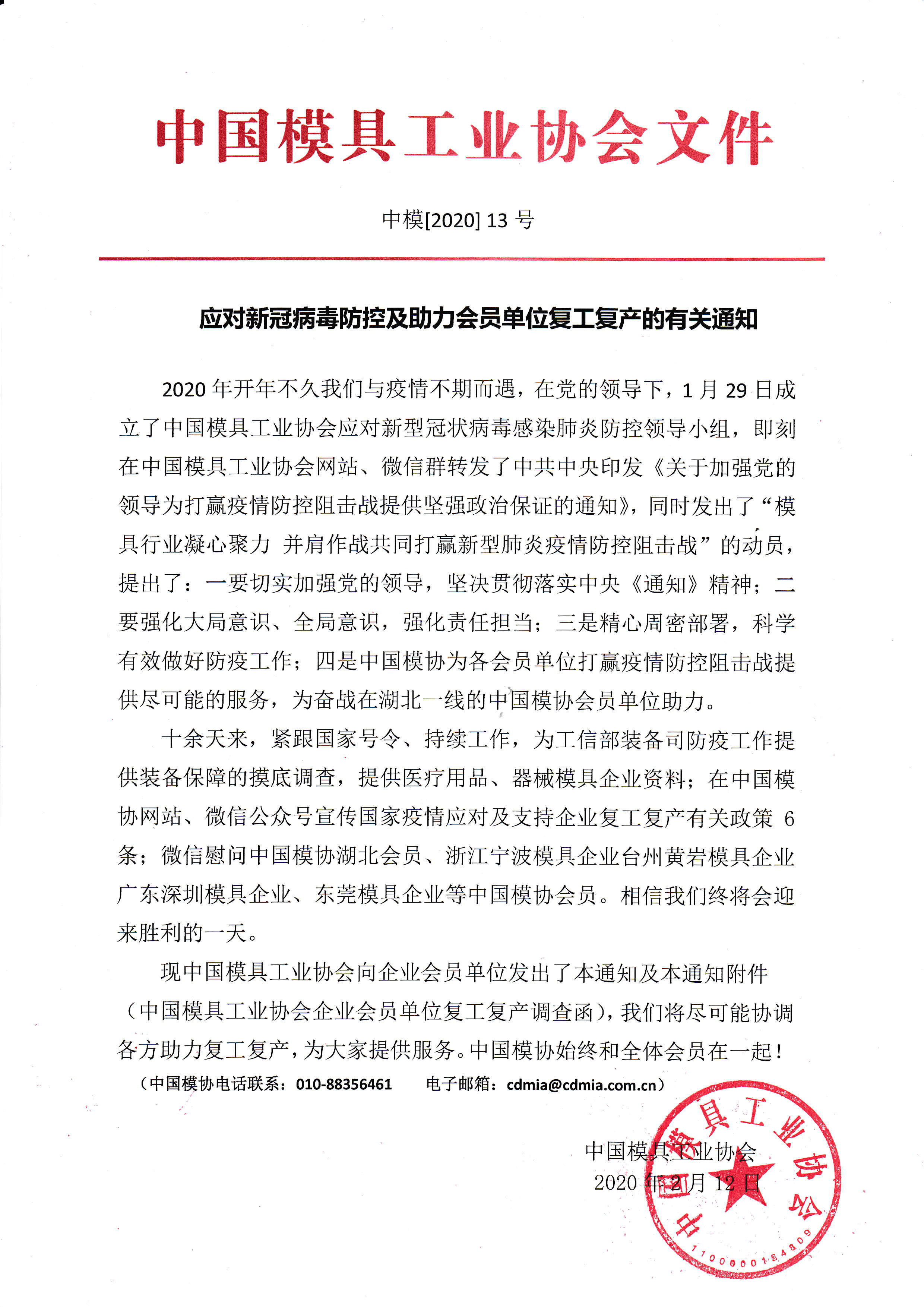 應對新冠病毒防控及助力會員單位復工復產的有關通知