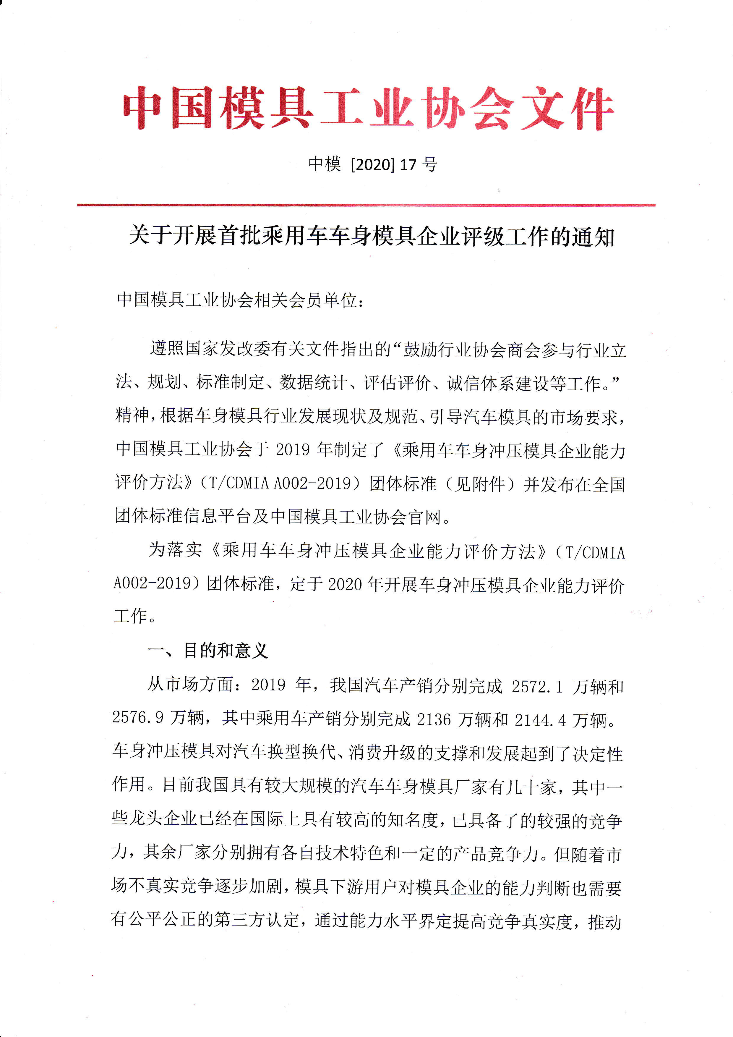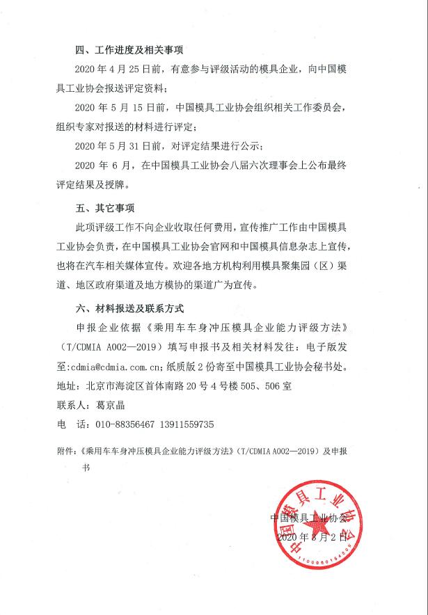 關于開展首批乘用車車身模具企業評級工作的通知
