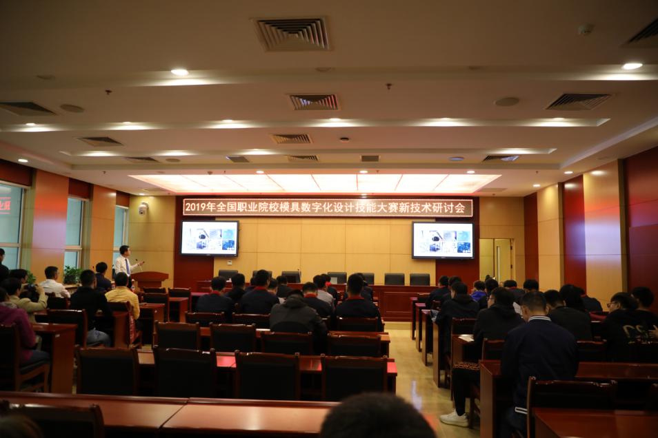 在比賽的同時,各學(xué)校領(lǐng)隊及指導(dǎo)教師參加了2019年全國職業(yè)院校模具數(shù)字化設(shè)計技能大賽新技術(shù)研討會。在會上,GF加工方案華北區(qū)銷售總監(jiān)白相忠以“新技術(shù),新機(jī)遇”為主題,北京精雕科技集團(tuán)有限公司CAD/CAM項目負(fù)責(zé)人王帥以“‘智’造下的CN程序”為主題分別向參會人員做了講座。