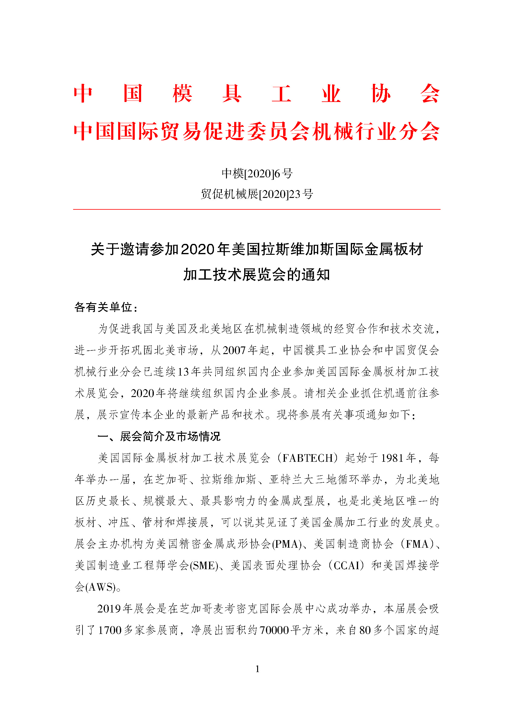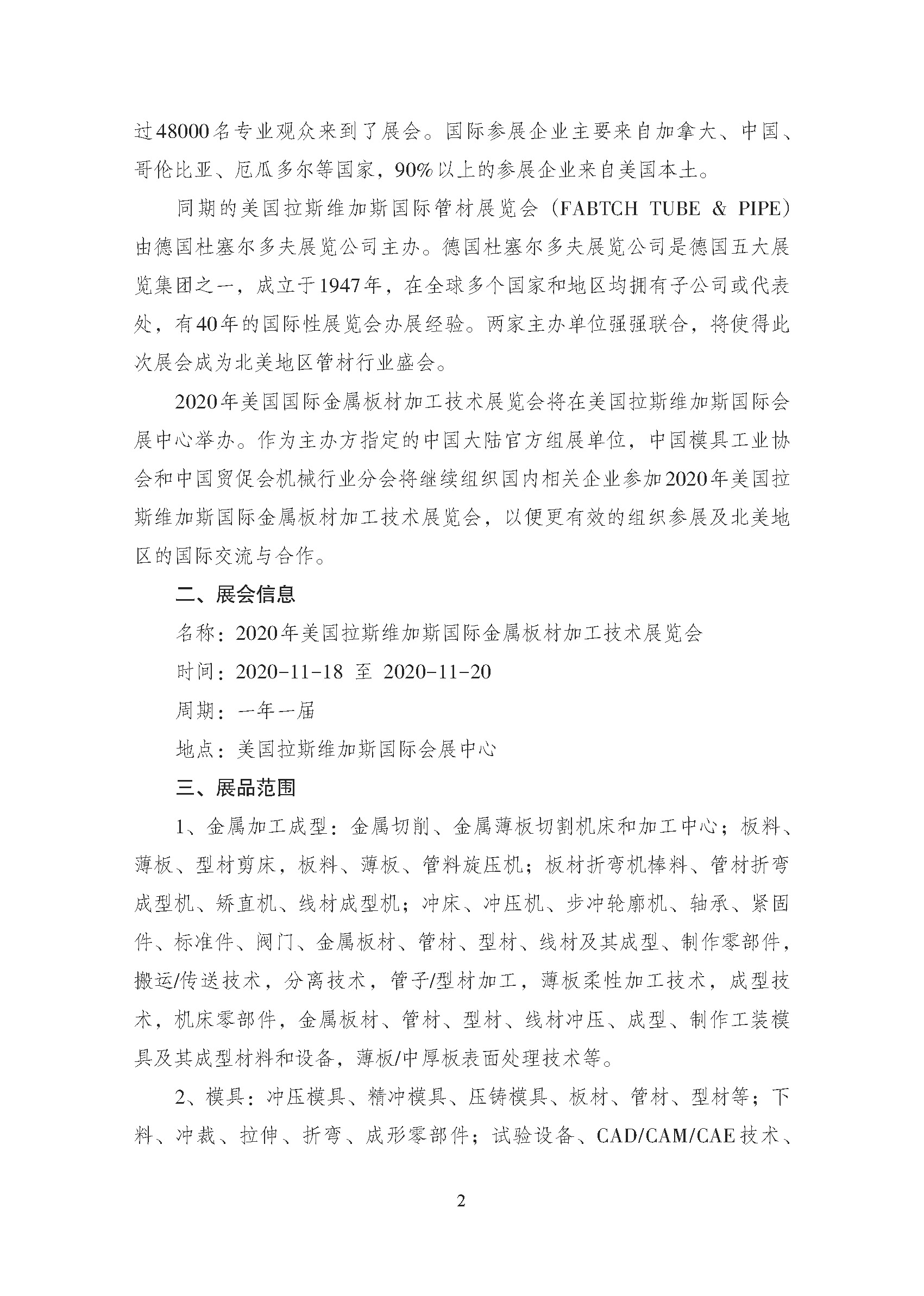 關(guān)于邀請(qǐng)參加2020年美國(guó)拉斯維加斯國(guó)際金屬板材加工技術(shù)展覽會(huì)的通知