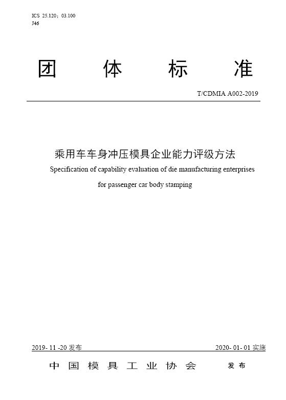 中國模協標準A002-乘用車車身沖壓模具企業能力評級方法-2019