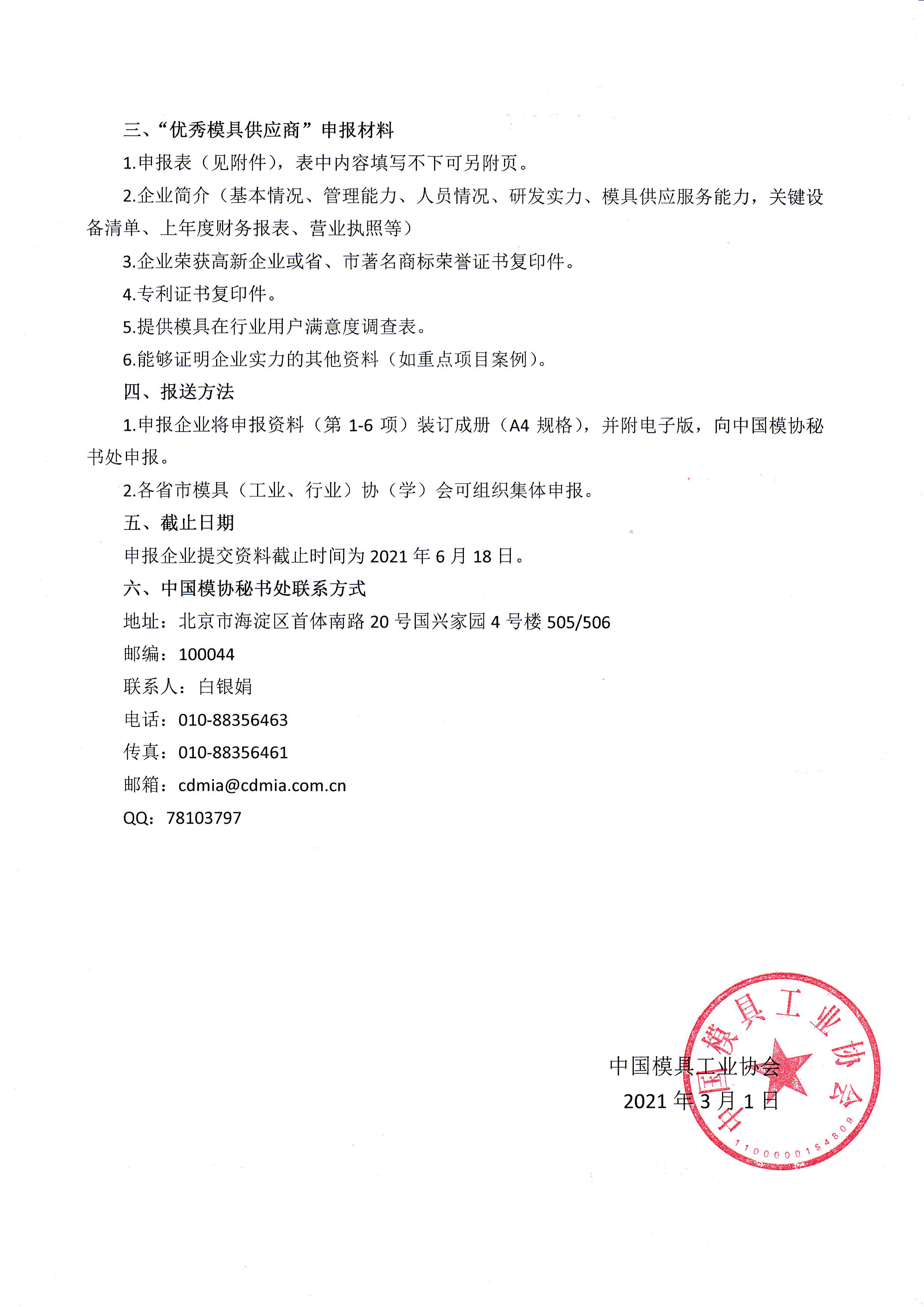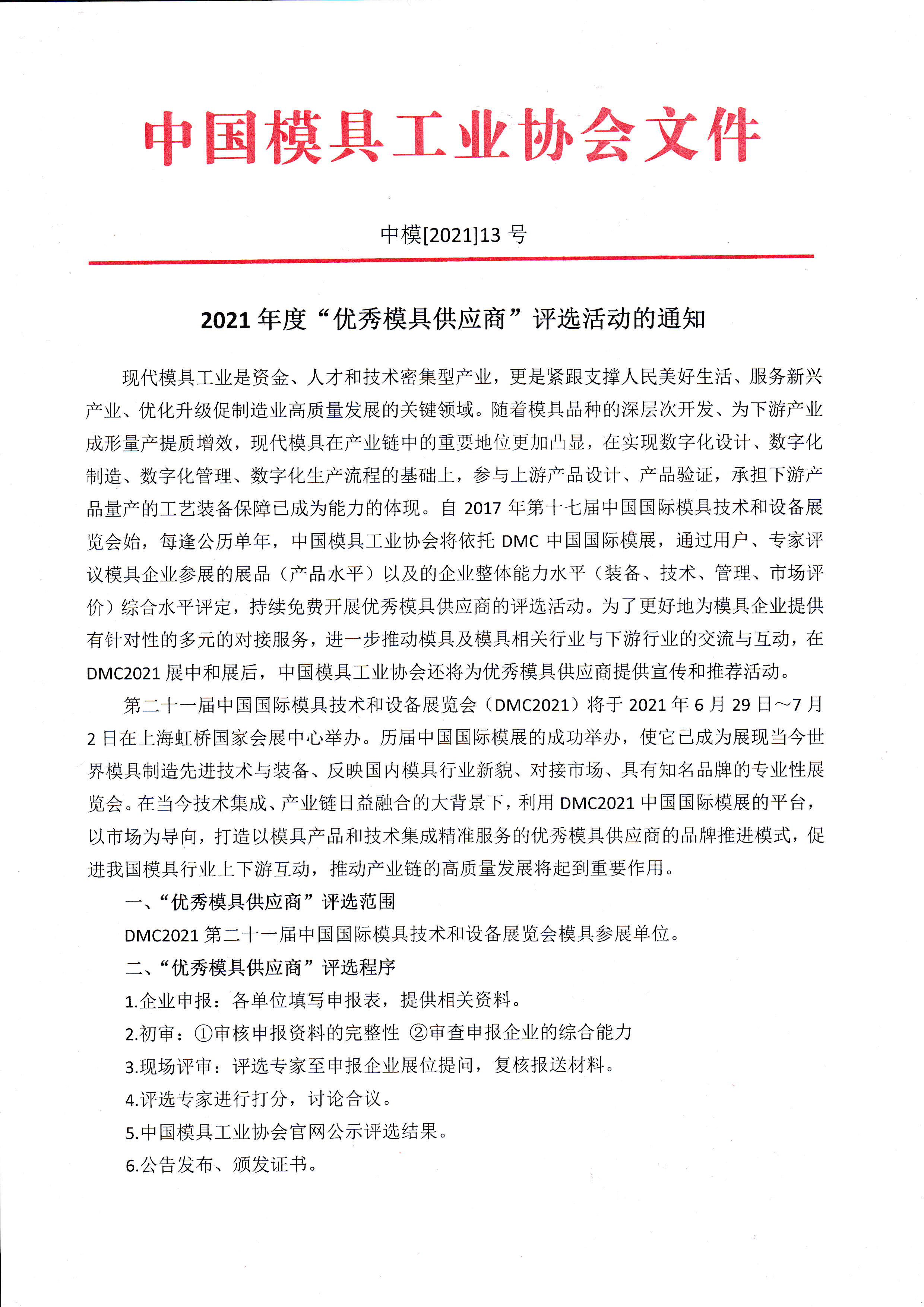 2021年度“優秀模具供應商”評選活動的通知