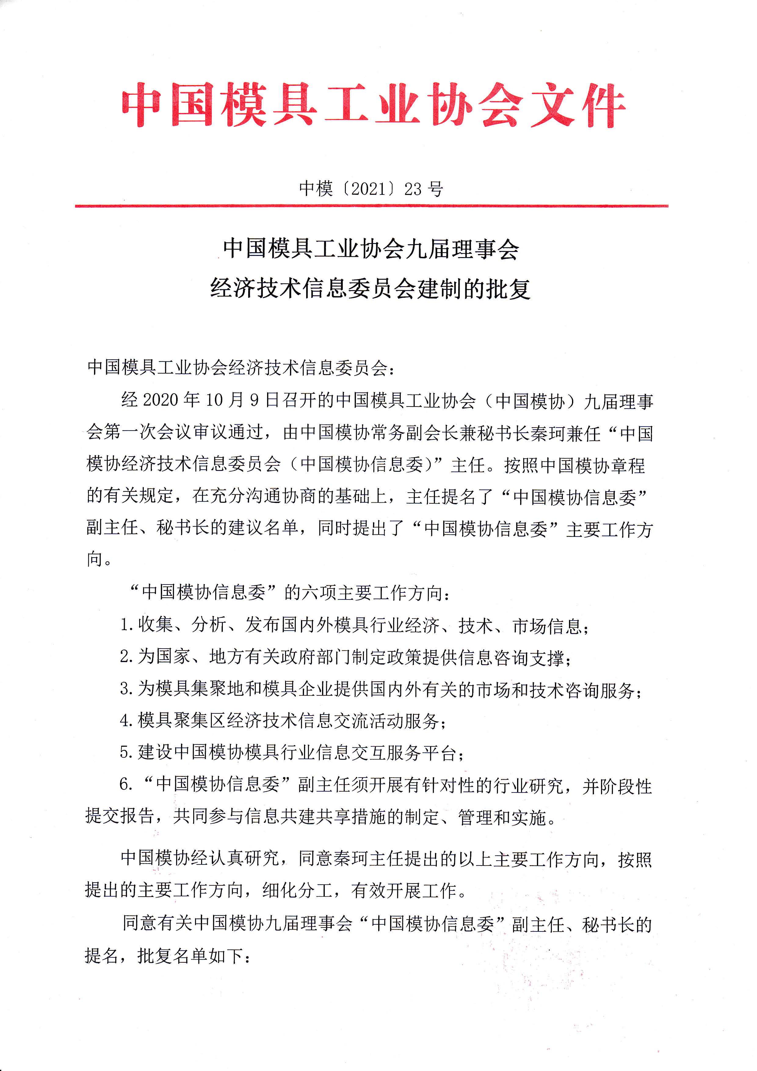 第九屆理事會(huì)經(jīng)濟(jì)技術(shù)信息委員會(huì)建制的批復(fù)