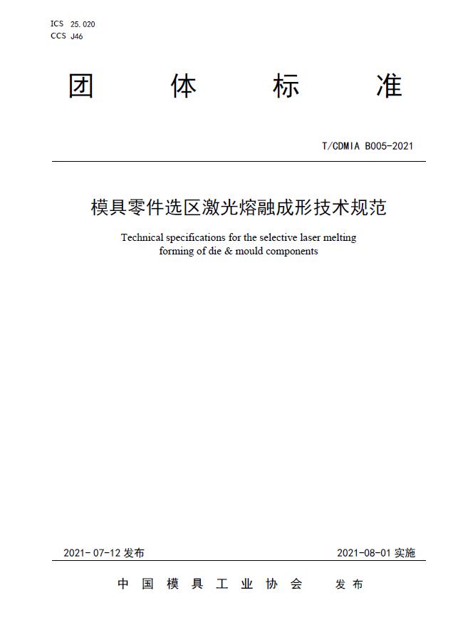 中國模協標準T/CDMIA B005-2021模具零件選區激光熔融成形技術規范