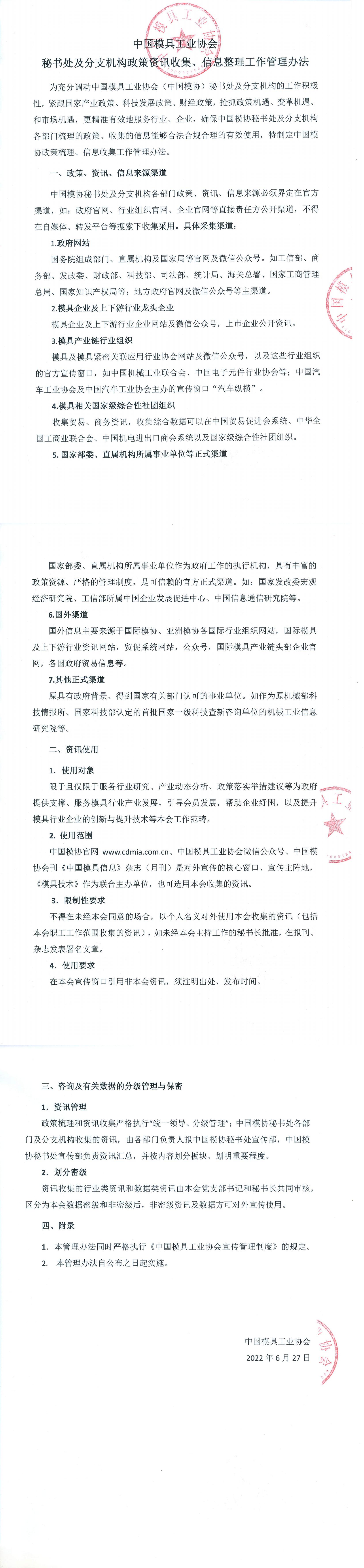 中國(guó)模具工業(yè)協(xié)會(huì)秘書(shū)處及分支機(jī)構(gòu)政策資訊收集、信息整理工作管理辦法