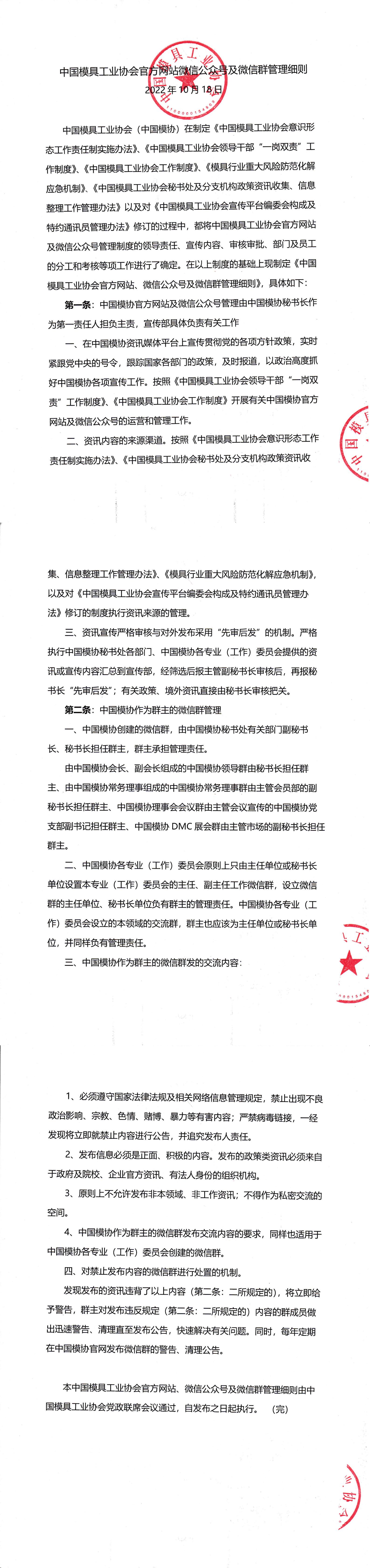 中國(guó)模具工業(yè)協(xié)會(huì)官方網(wǎng)站微信公眾號(hào)及微信群管理細(xì)則