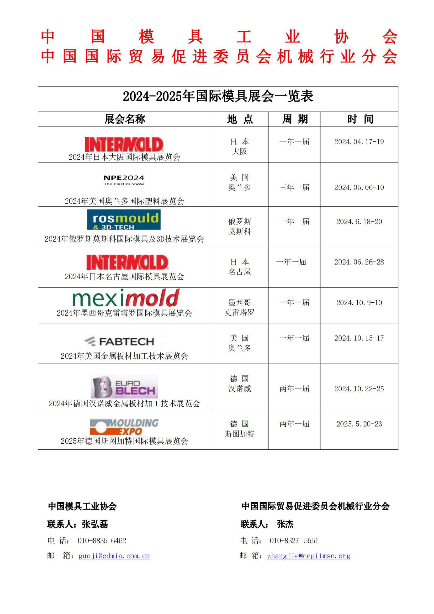 2024-2025年國際模具展會一覽表