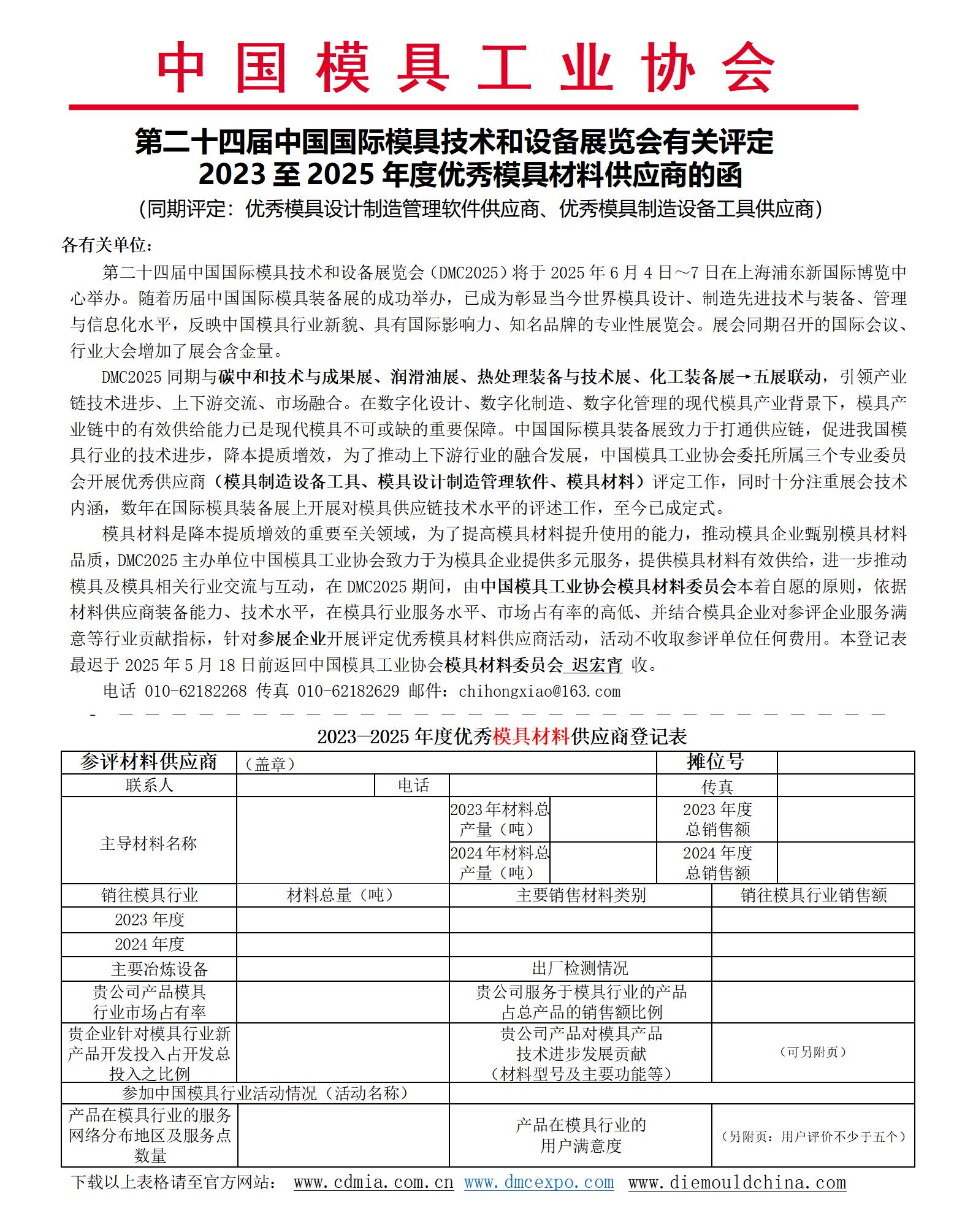 2023 至 2025年度優(yōu)秀模具材料供應(yīng)商的函